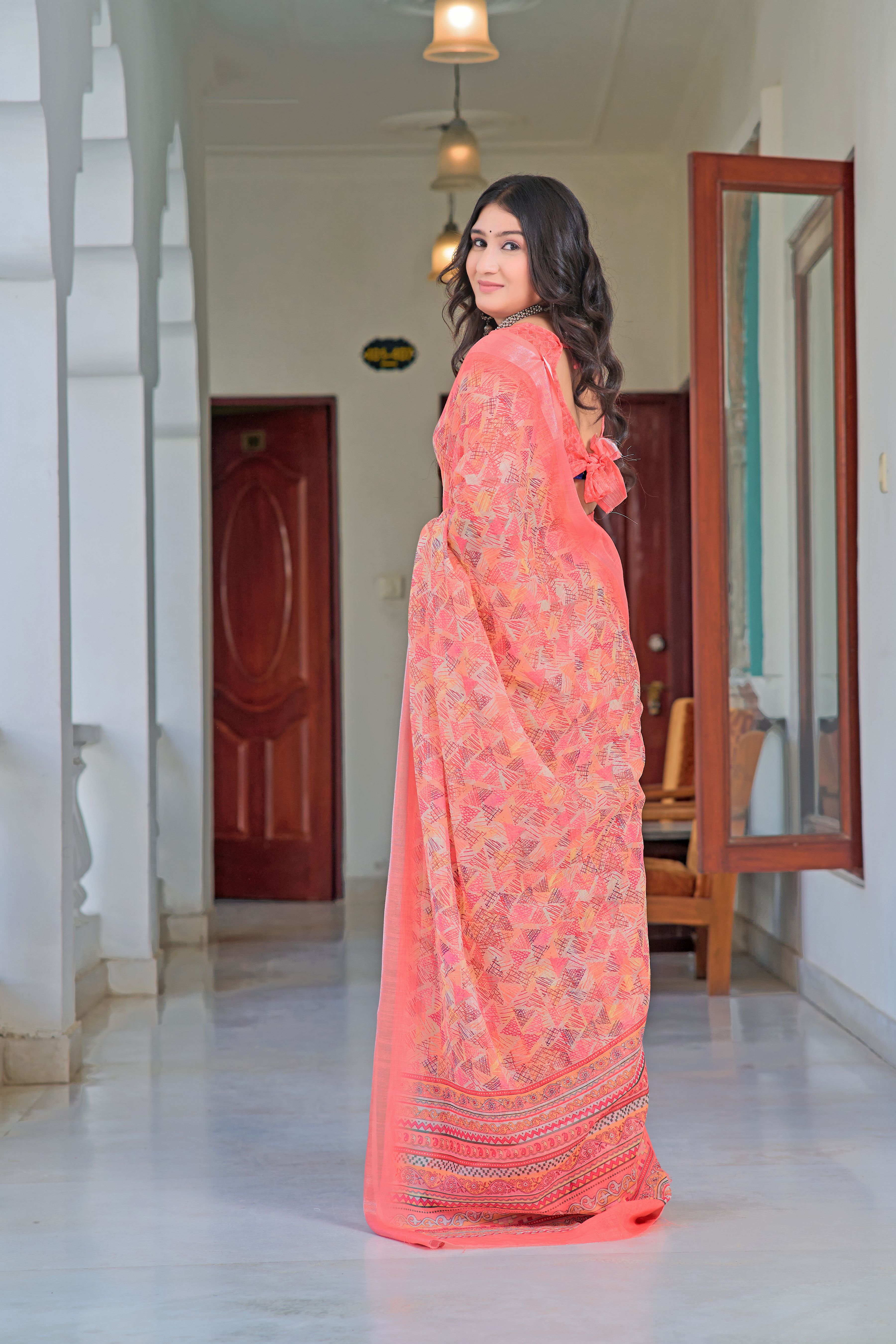 Pink Color Beautiful Linen Cotton Fabric Designer Festive Wear Saree