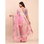 Pink Color Beautiful Linen Cotton Fabric Woven Designer Saree