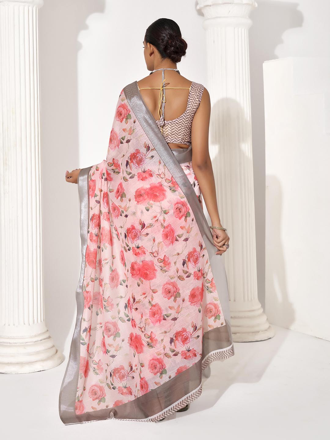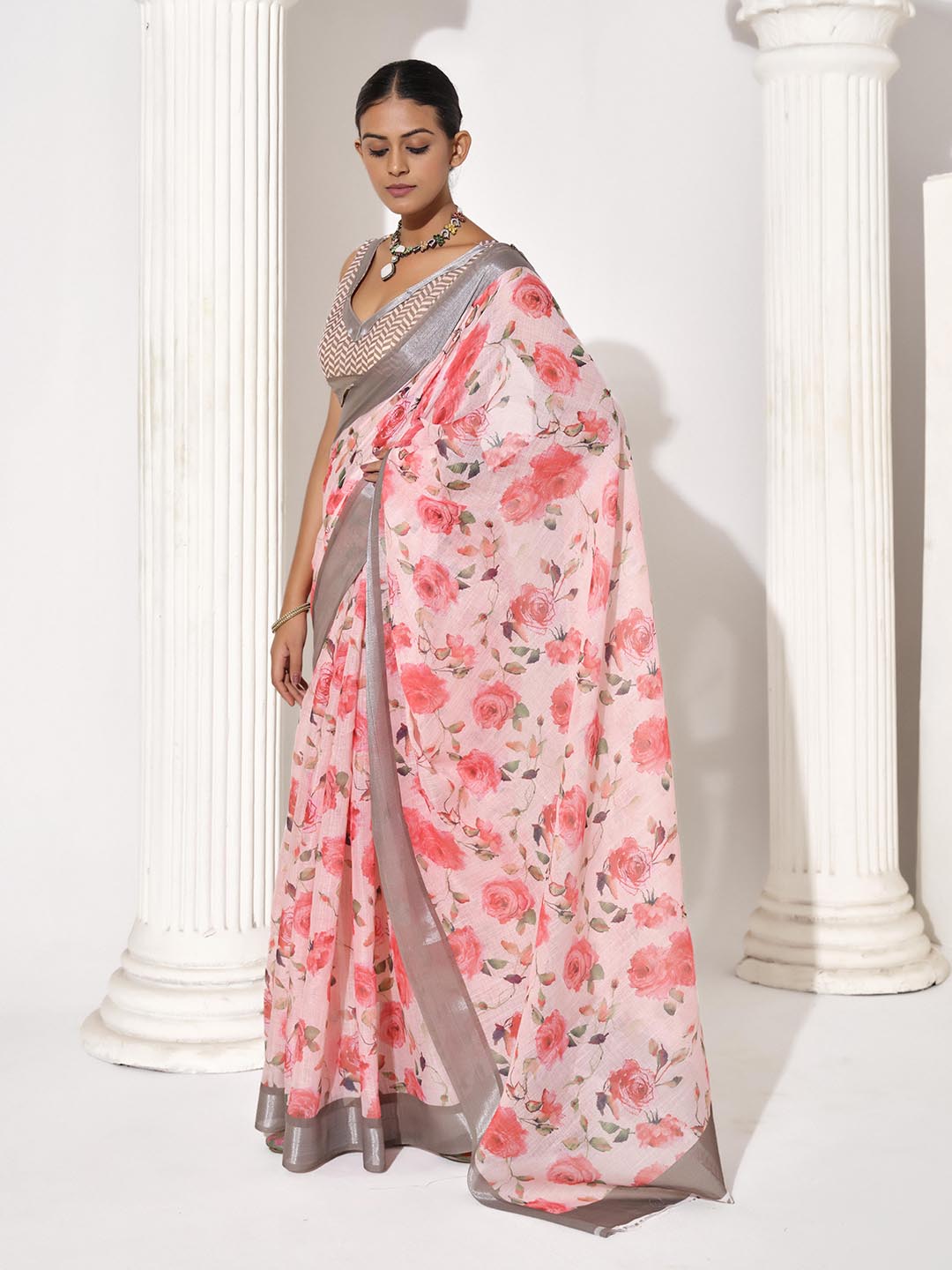 Pink Color Cotton Blend Girlie Designer Printed Saree For Rich Sophisticated Looks