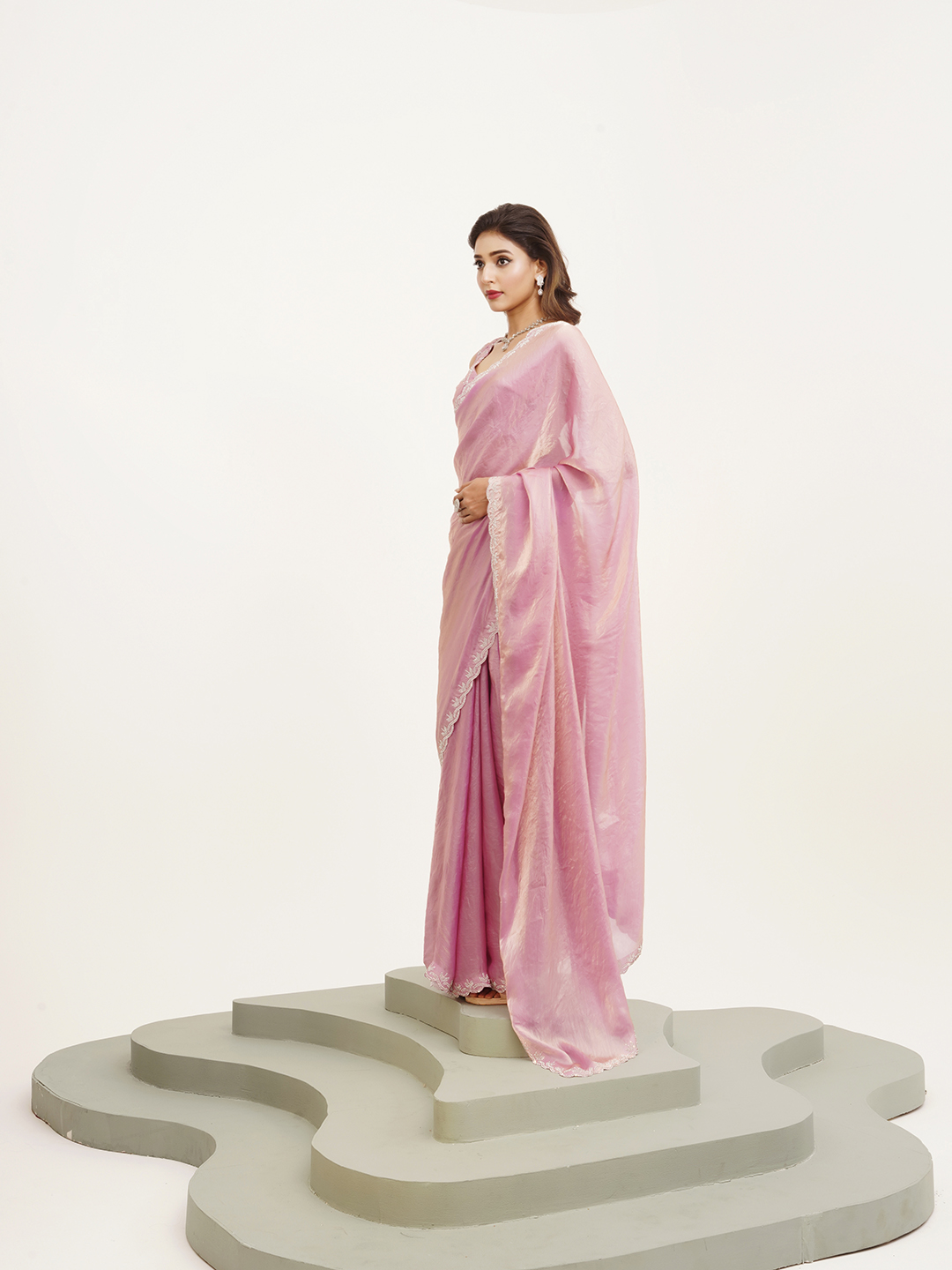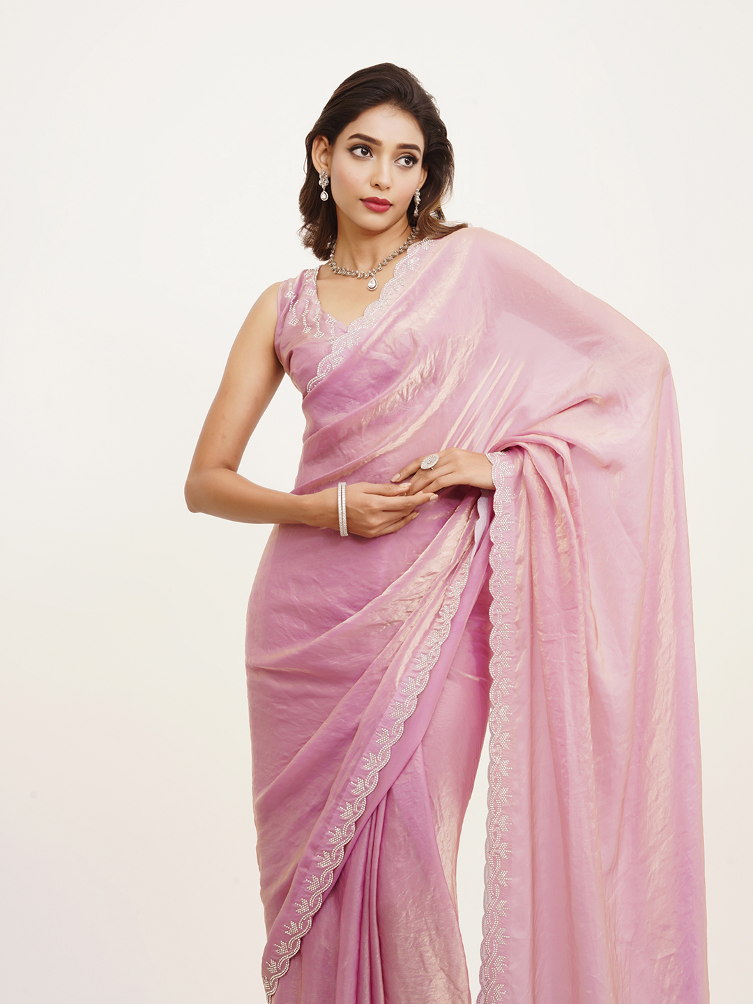 Pink Color Embellished Beads and Stones Silk Saree For Beautiful Partywear Saree