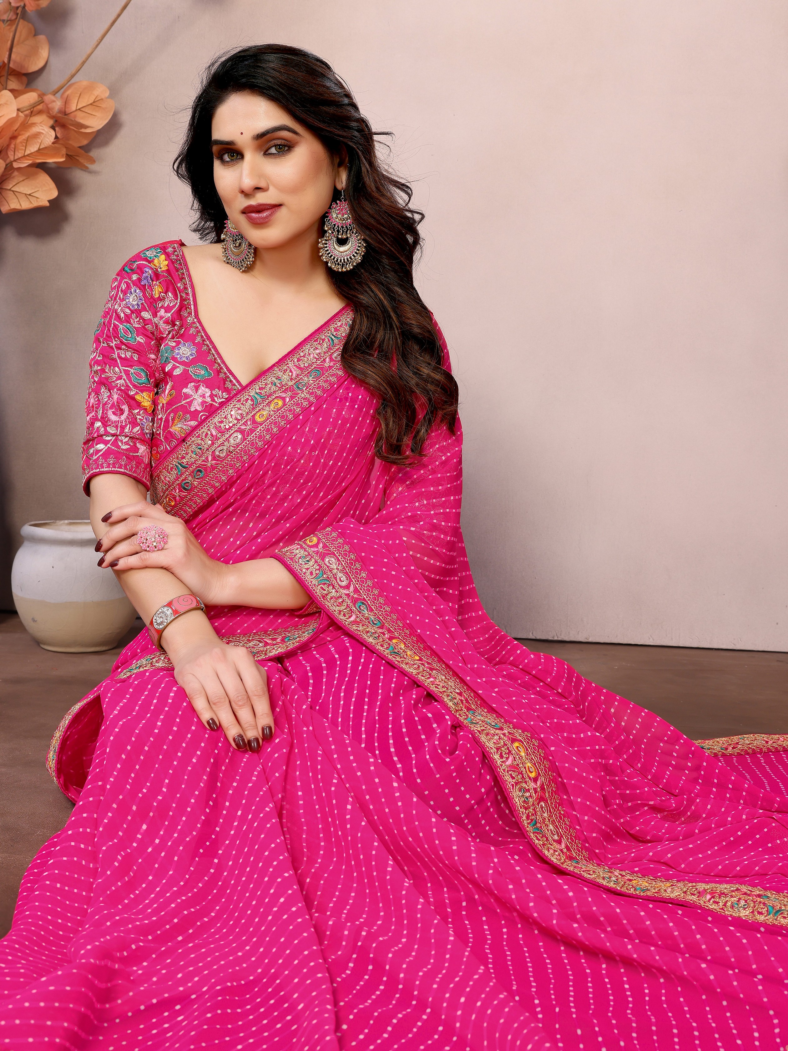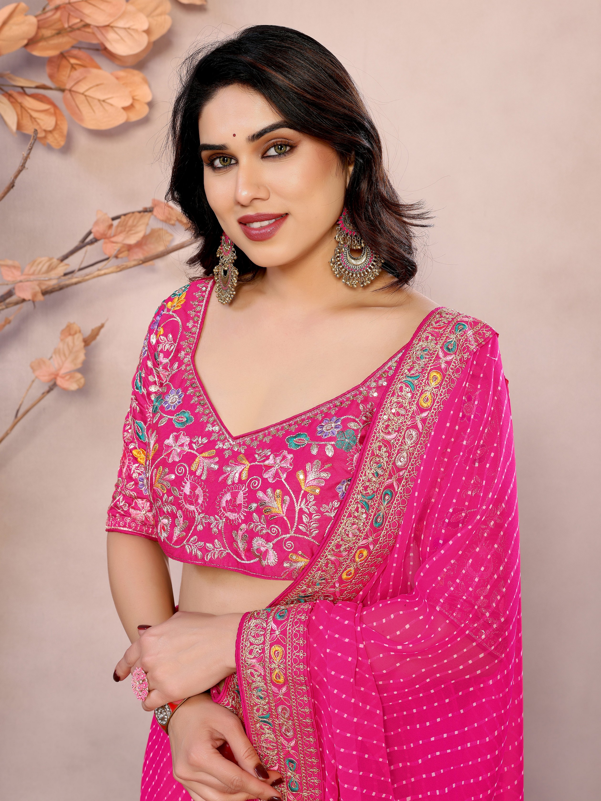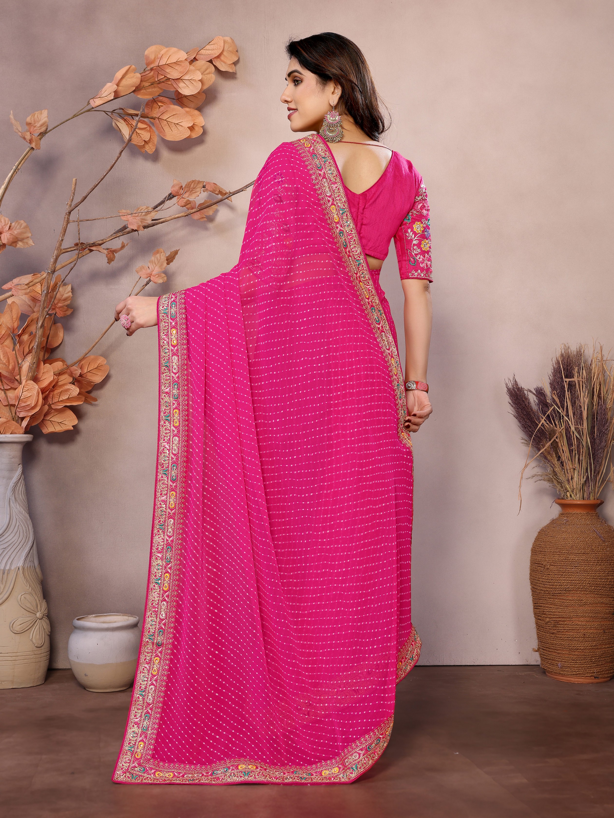 Pink Color Georgette Fabric Designer Embroidered Traditional Leheria Saree