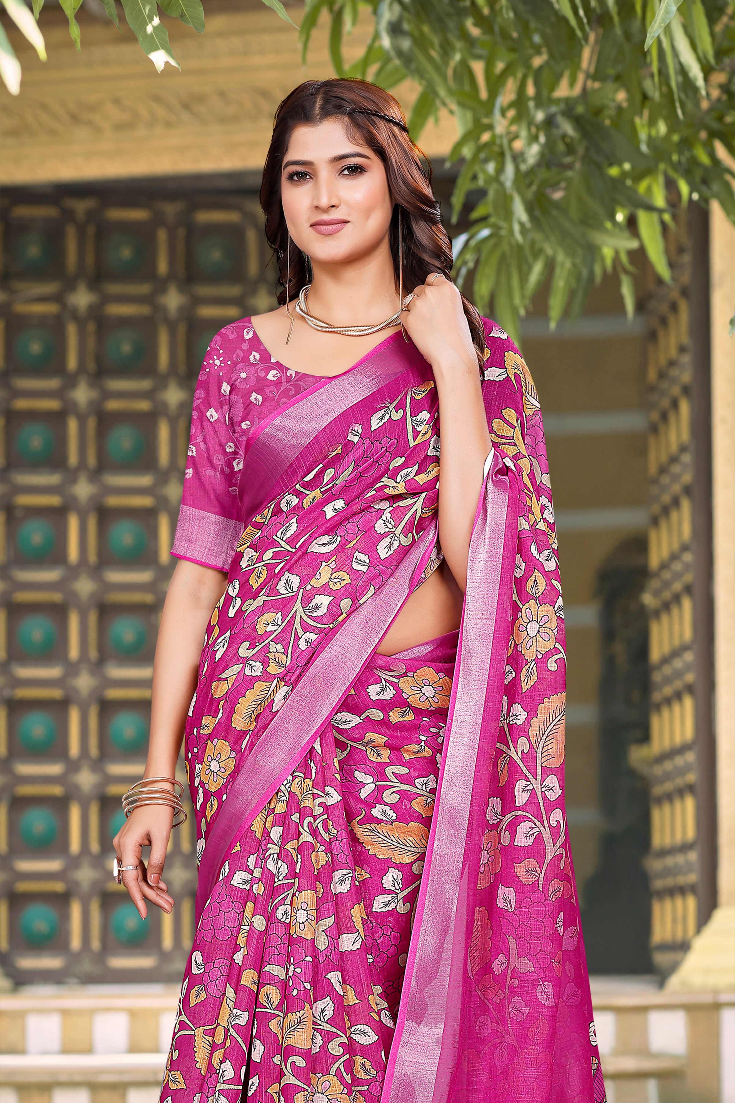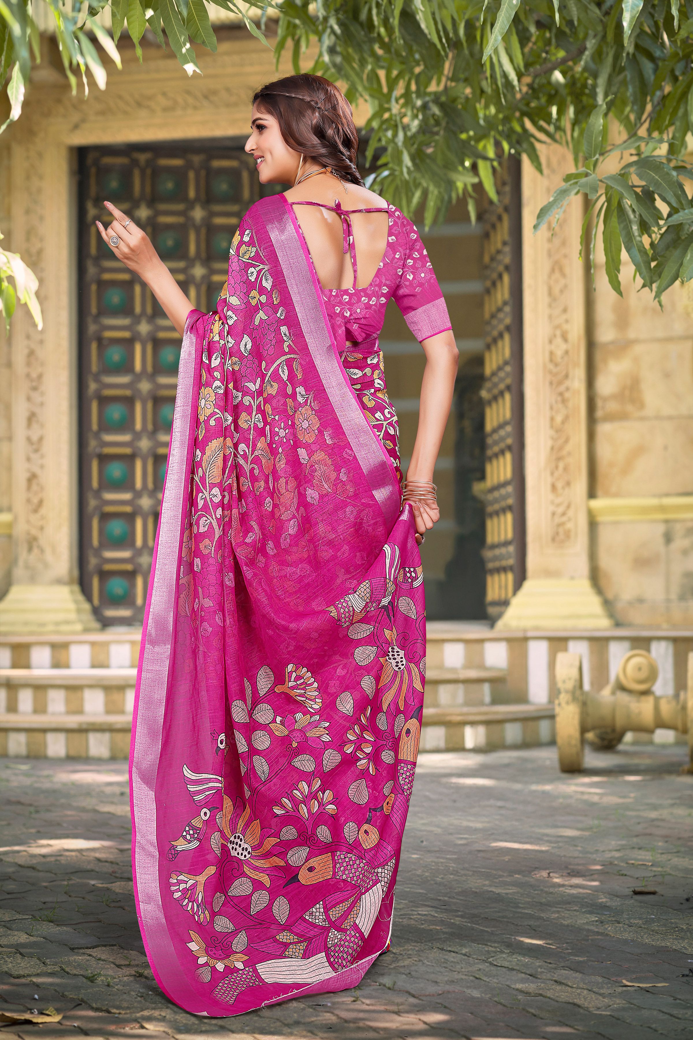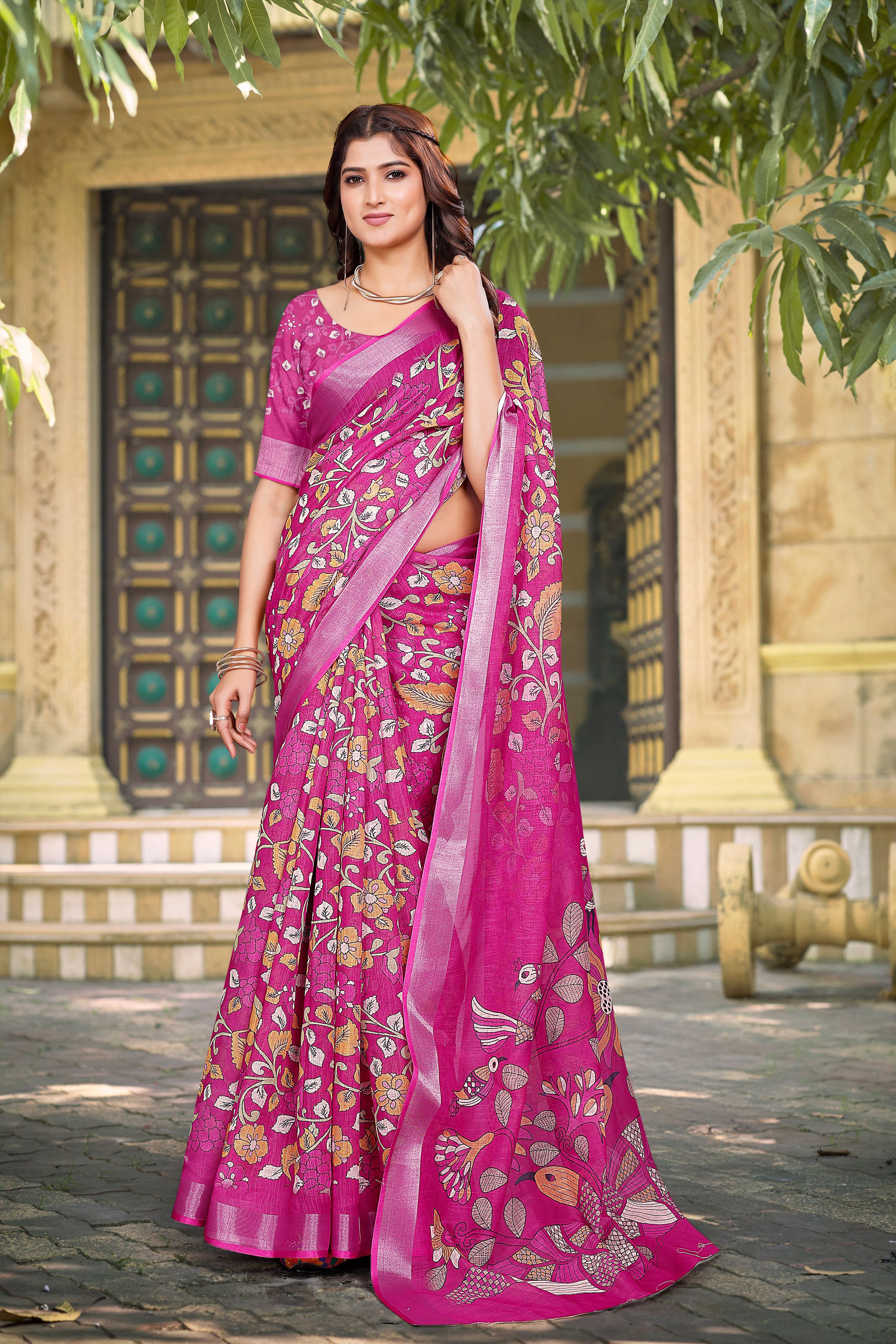 Pink Color Linen Cotton Fabric Beautiful Festive Special Saree