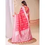 Pink Color Linen Cotton Fabric Wevon Jacquard Designer Beautiful Partywear Saree