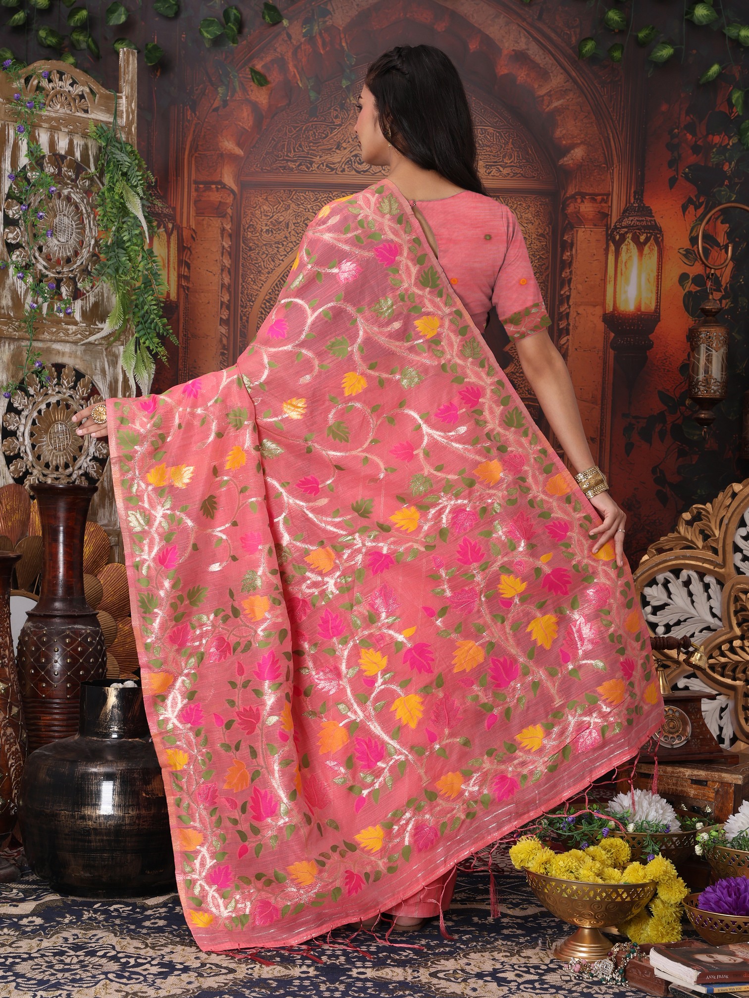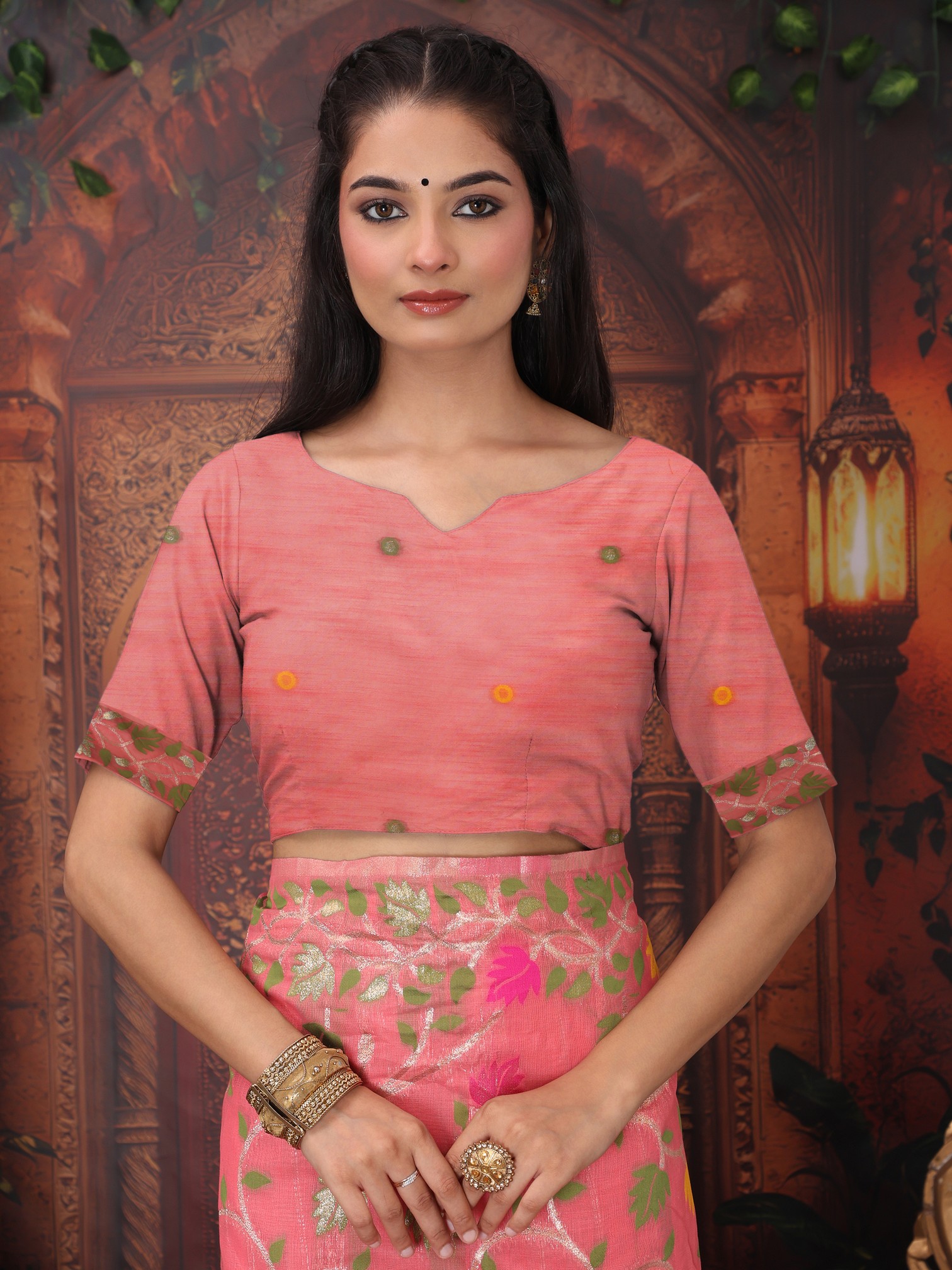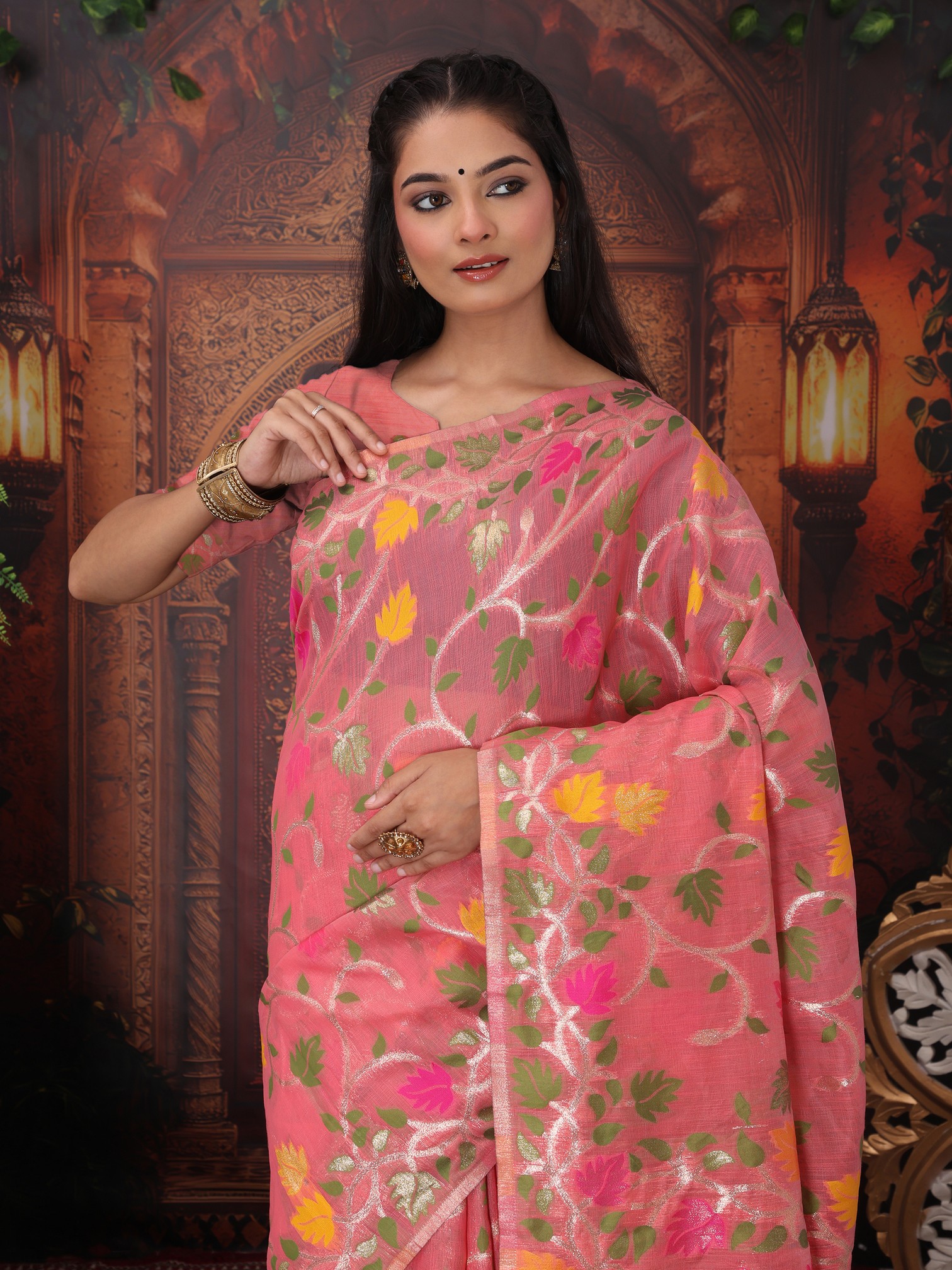 Pink Color Linen Cotton Fabric Woven Designer Partywear Saree