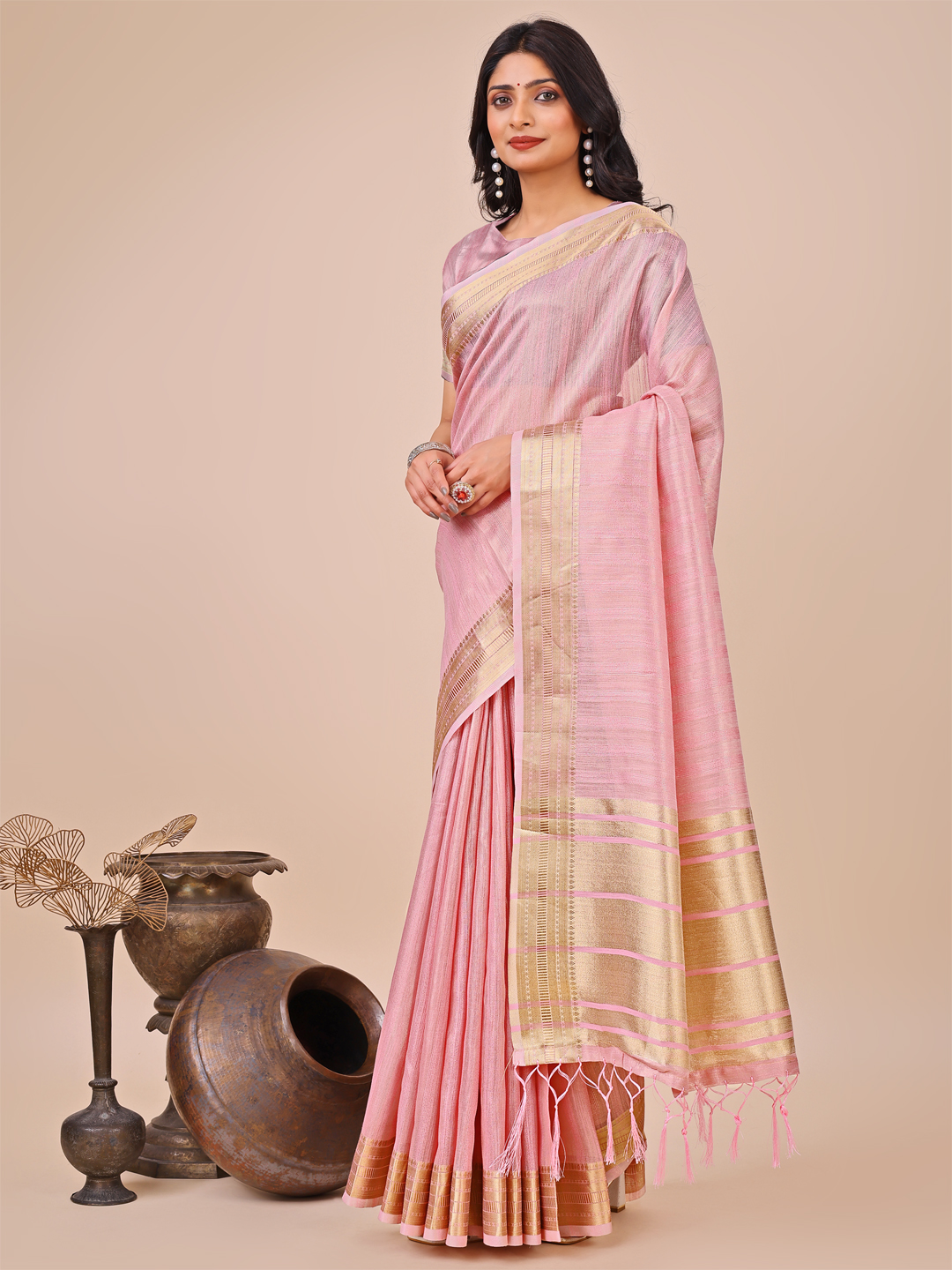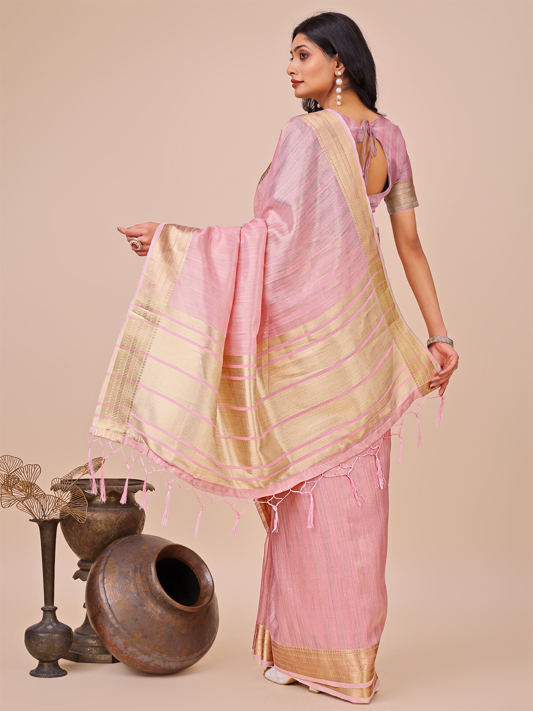 Pink Color Organza Fabric Wevon Designer Traditonal Wear Saree