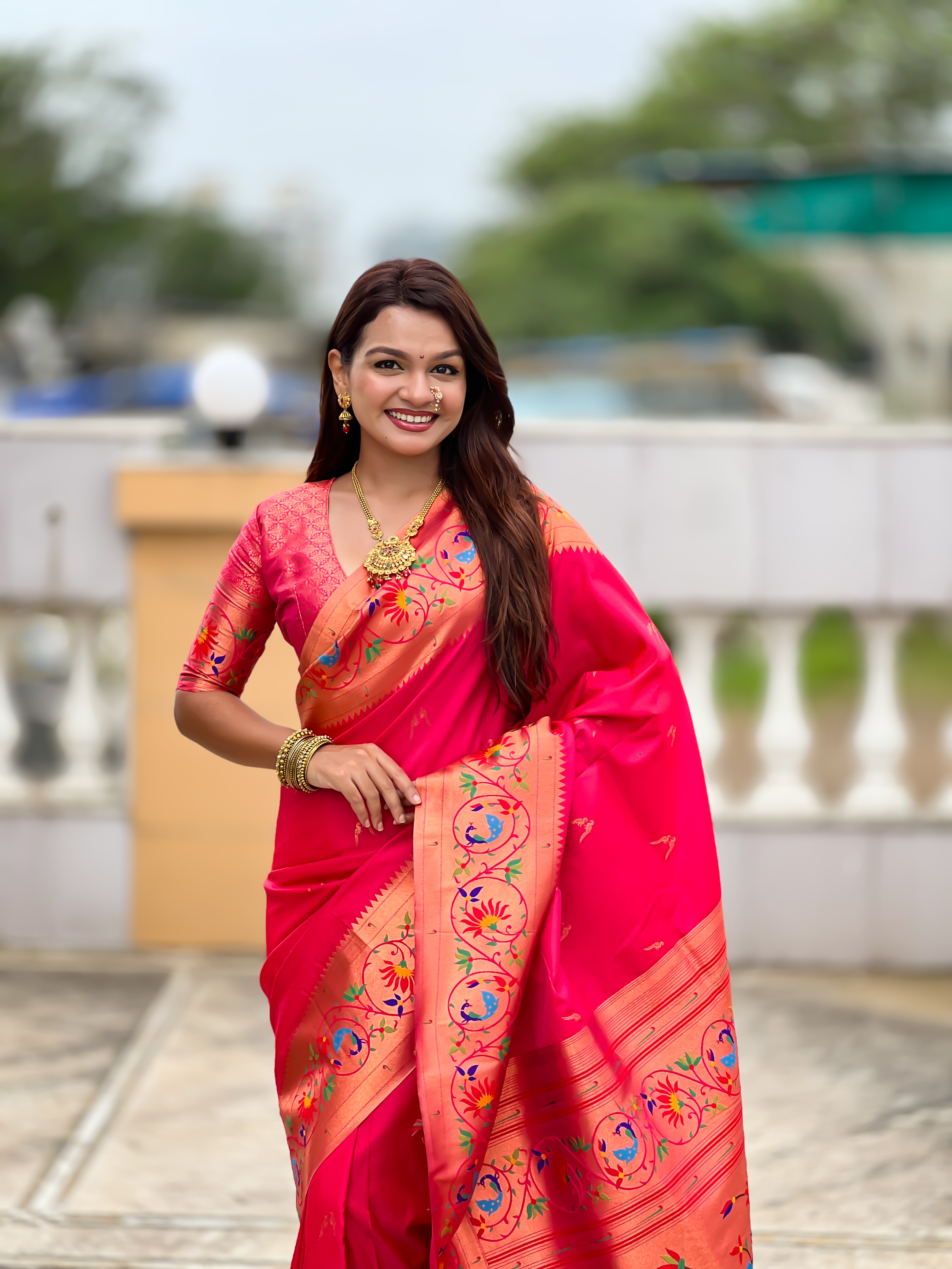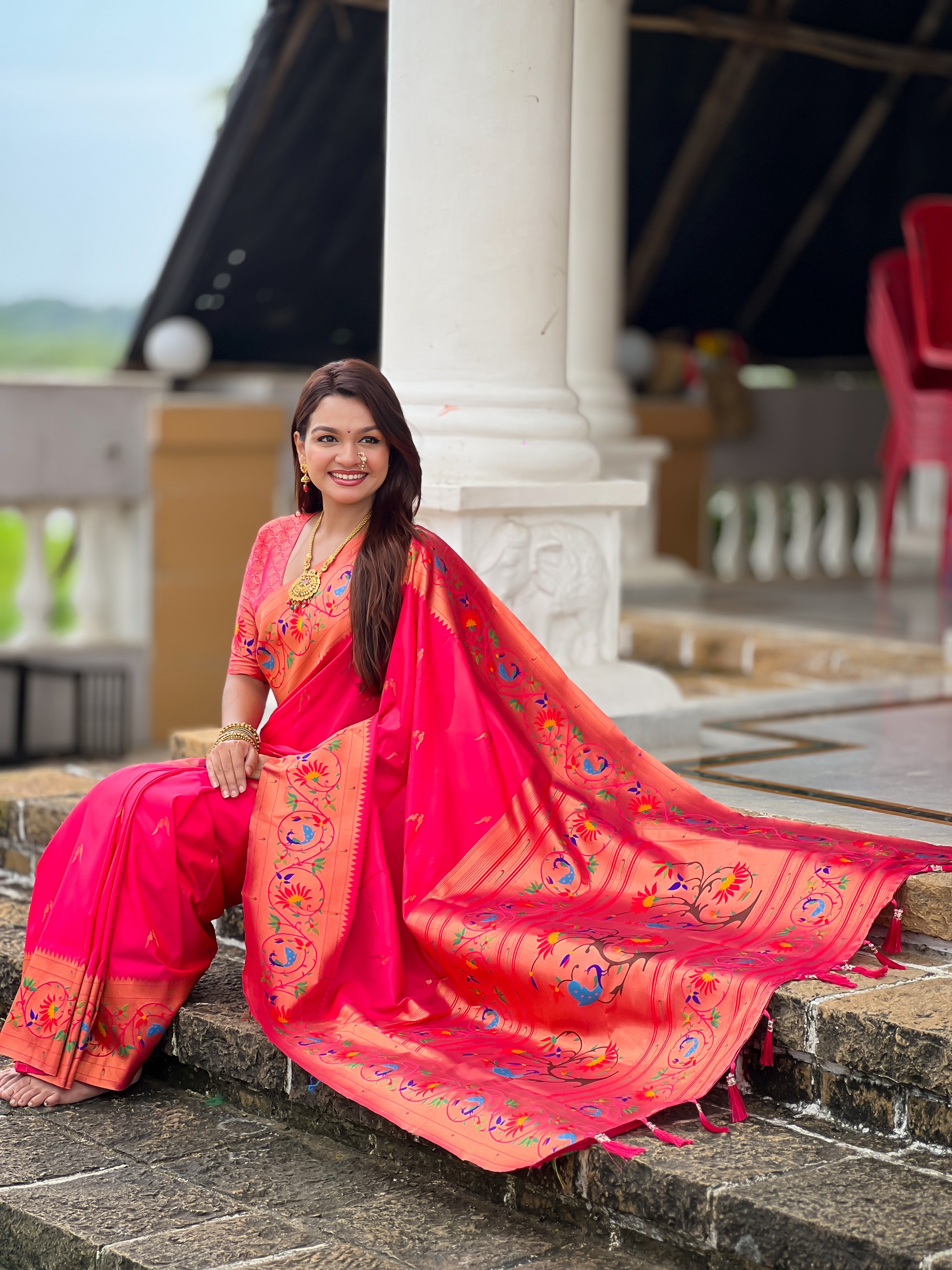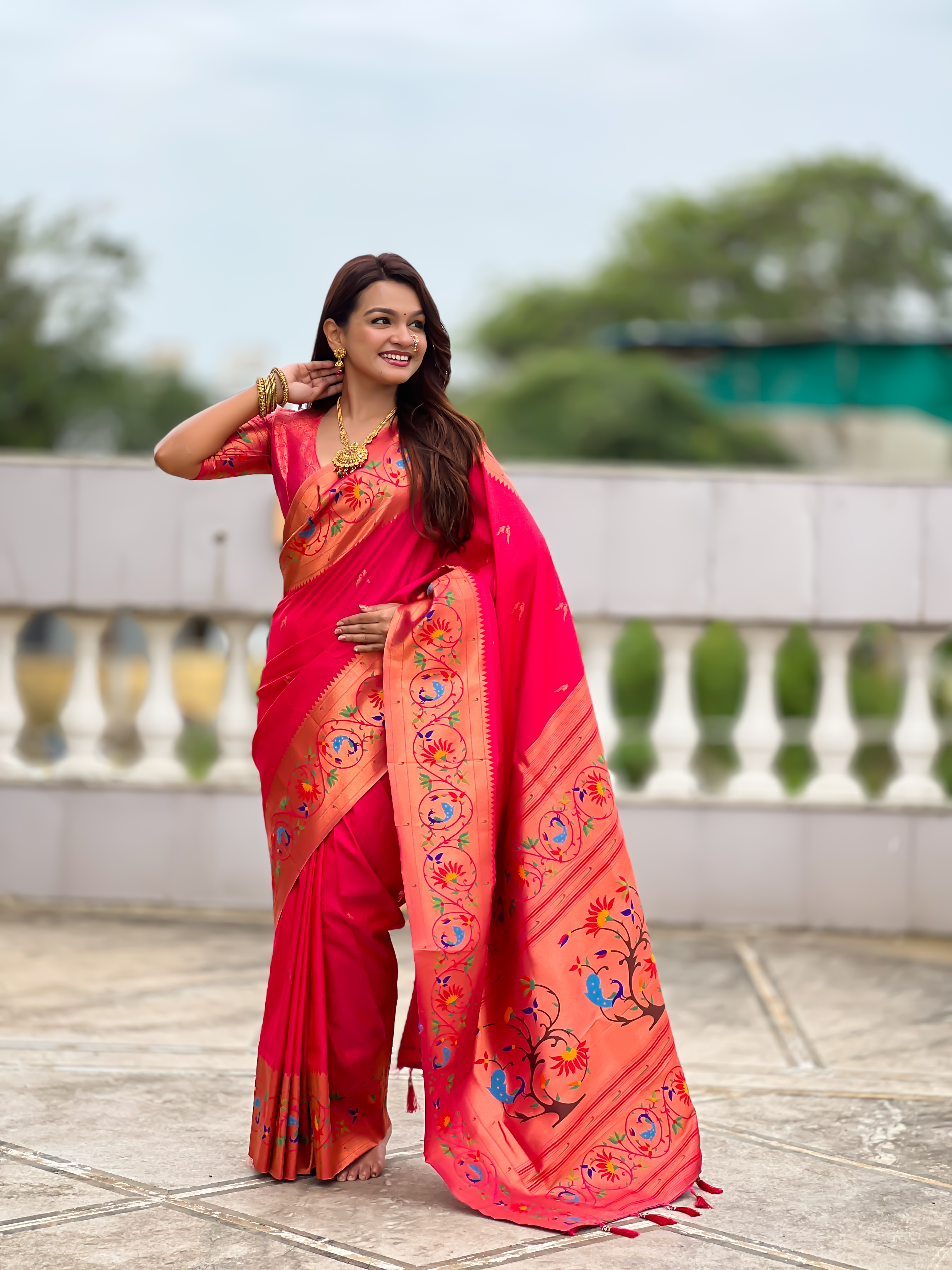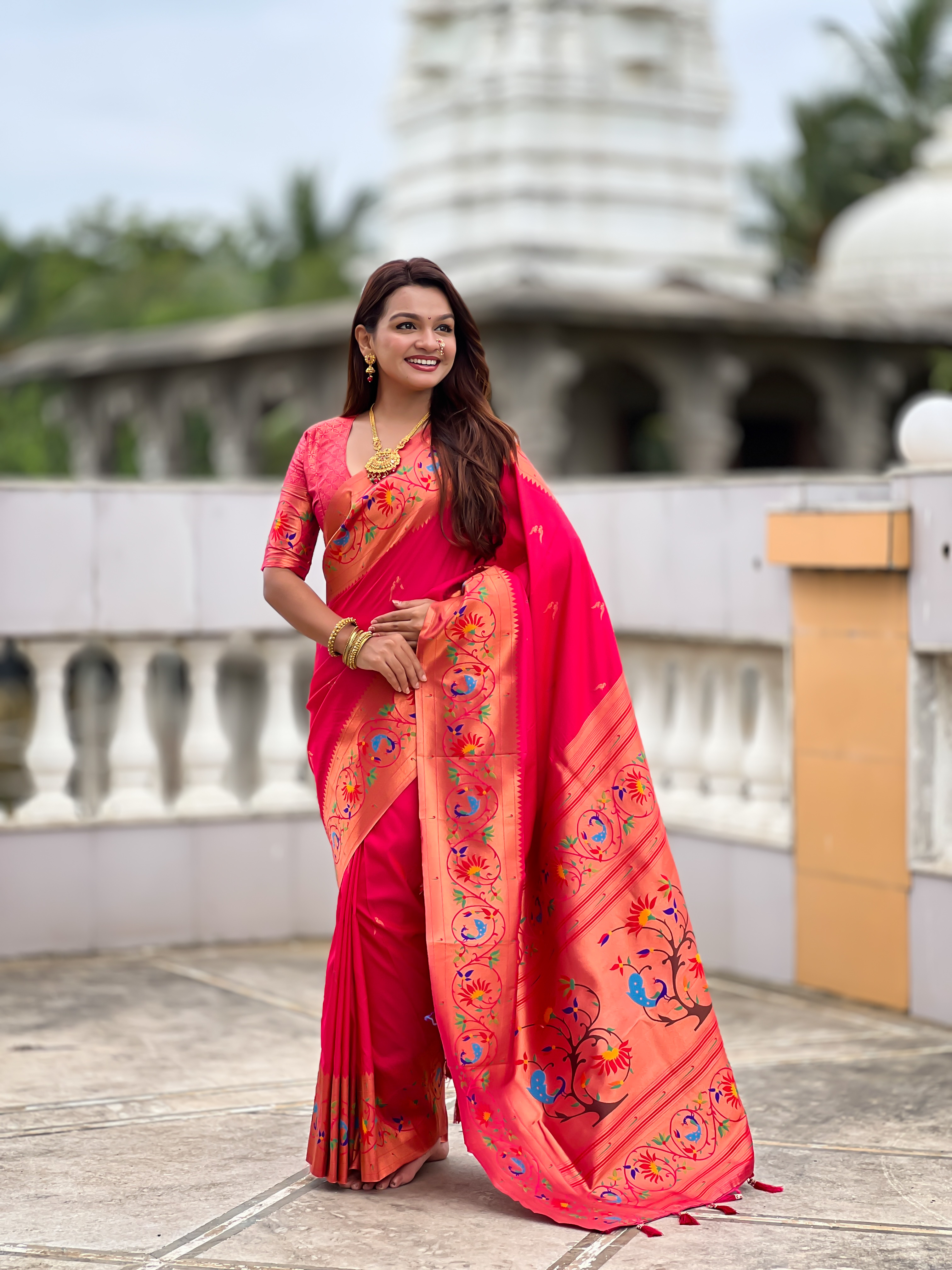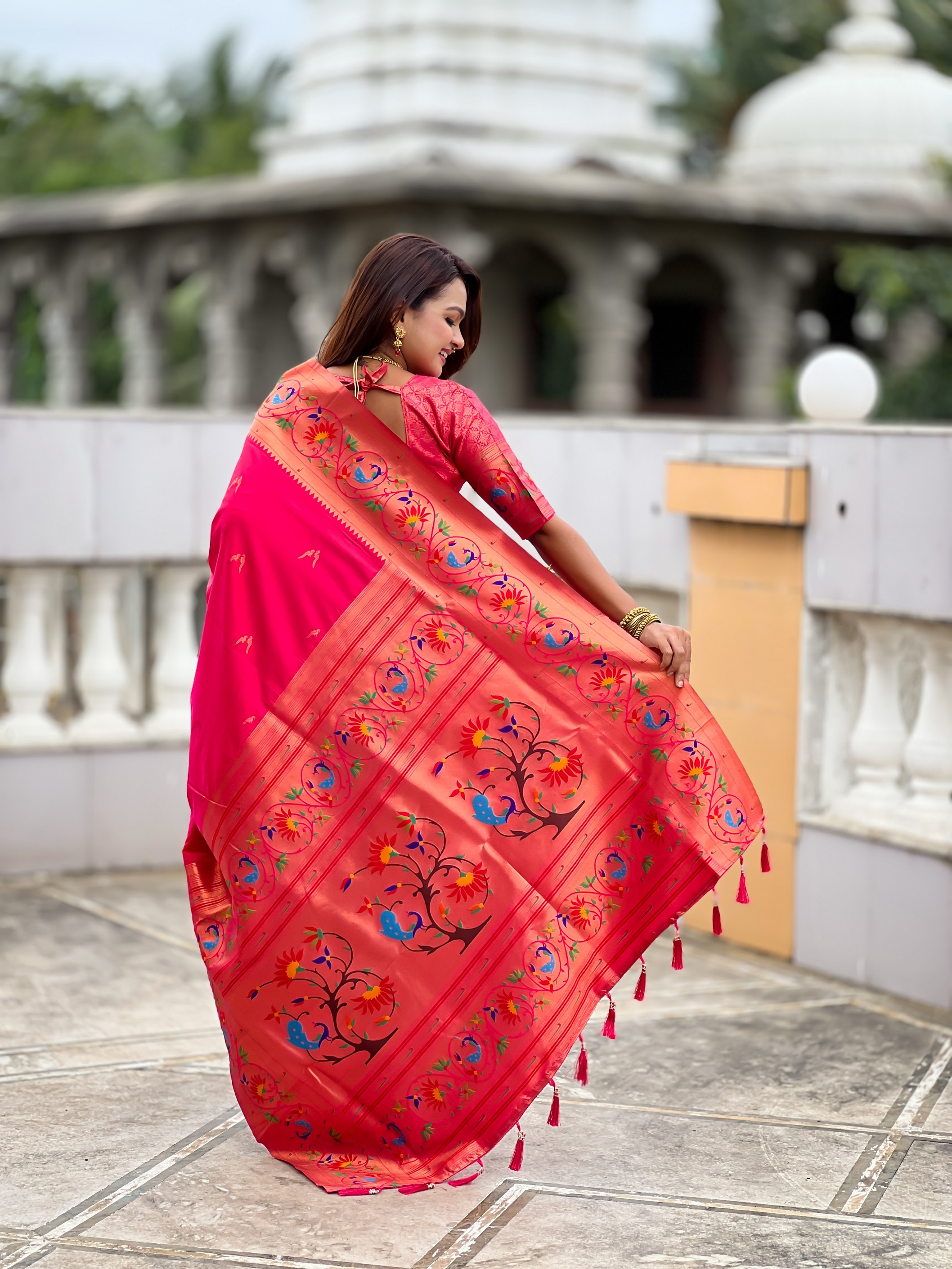 Pink Color Paithani Silk Fabric Woven Meenakari Jacquard Designer Graceful Wedding Saree