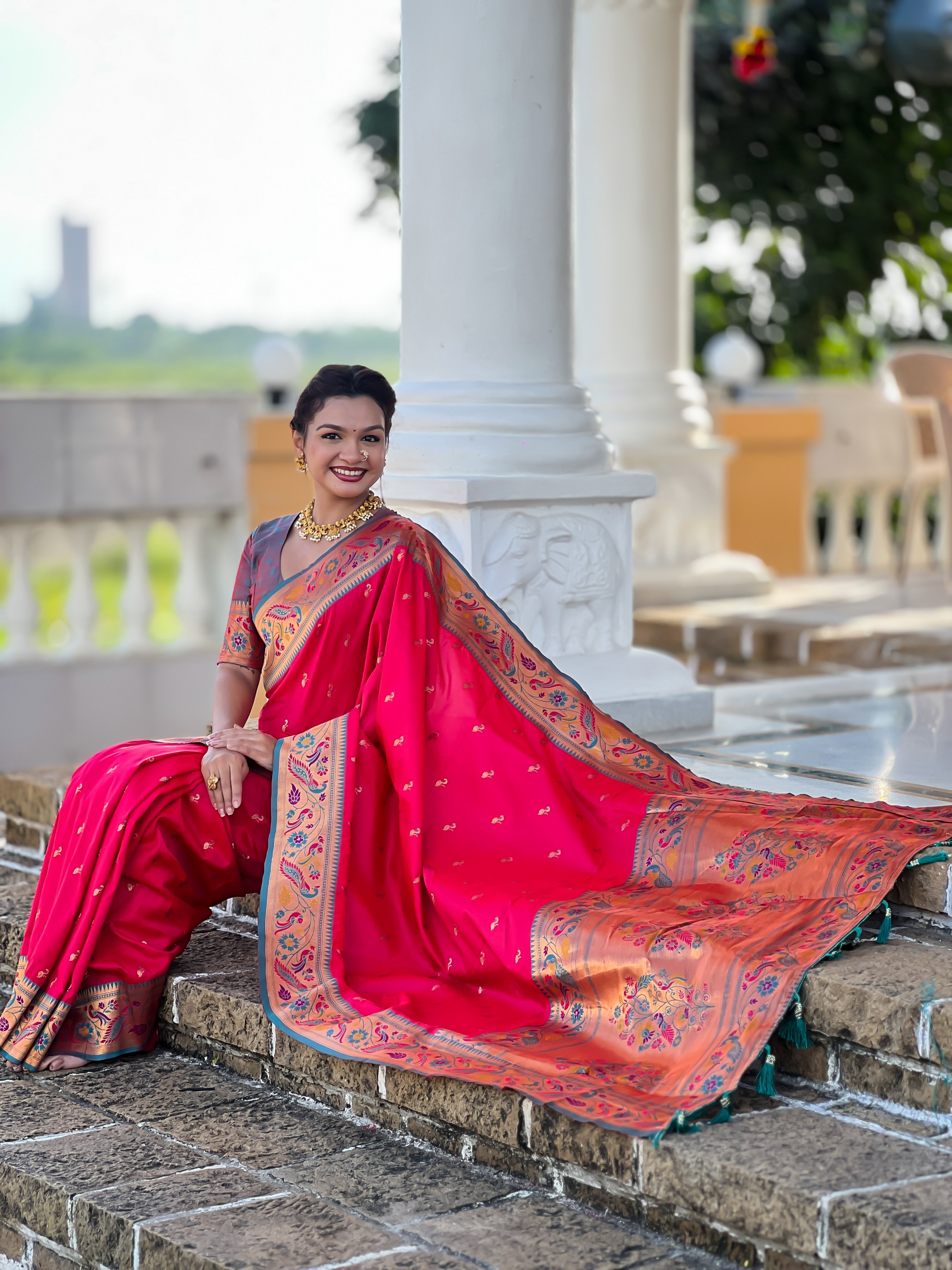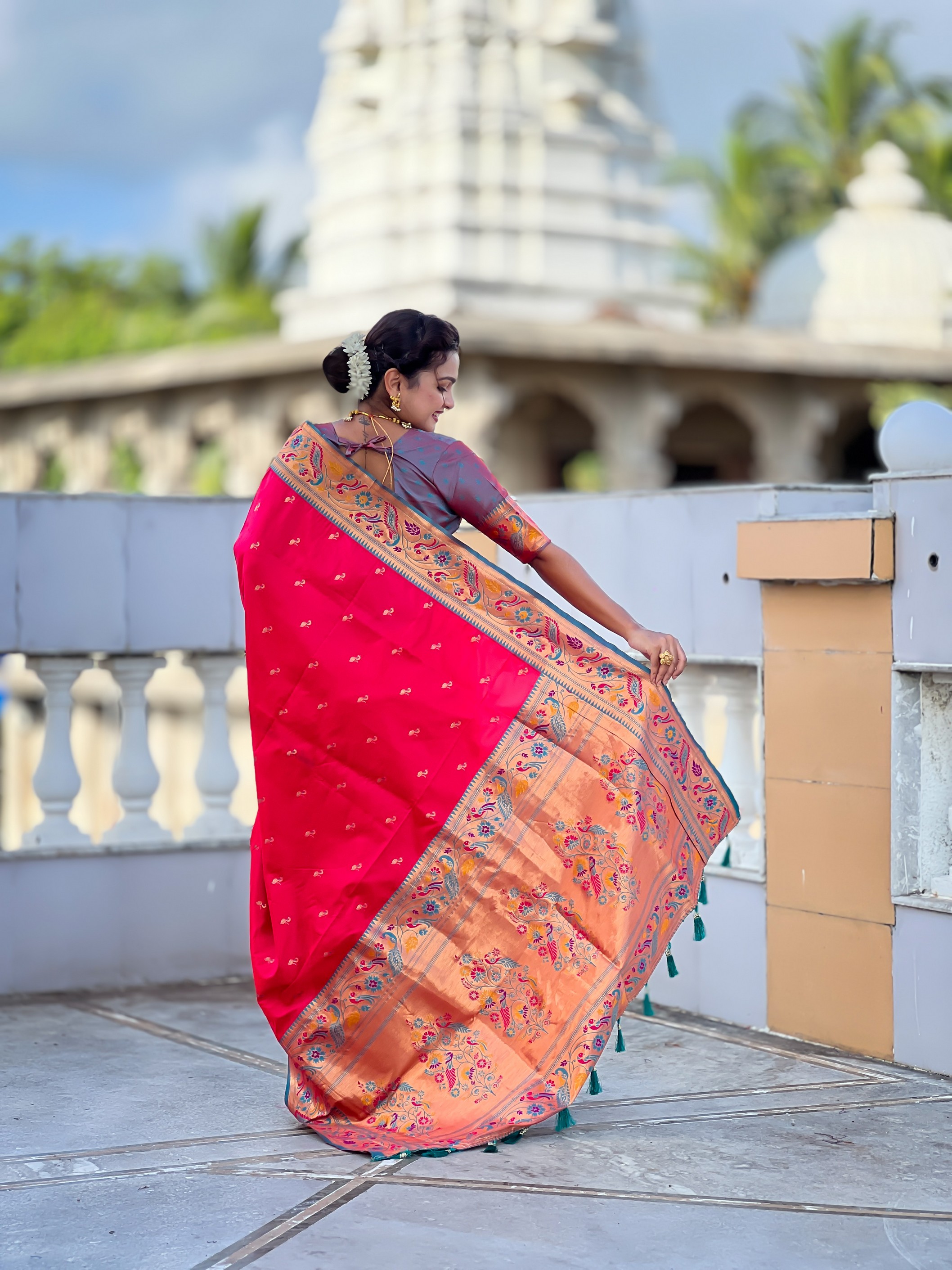 Attractive These Party Wear Saree in Fine Colored.These Saree Are Paithani Silk And Blouse is Fabricated On Paithani Silk.Its Beautified With Weaving Jacquard Meenakari Designer.