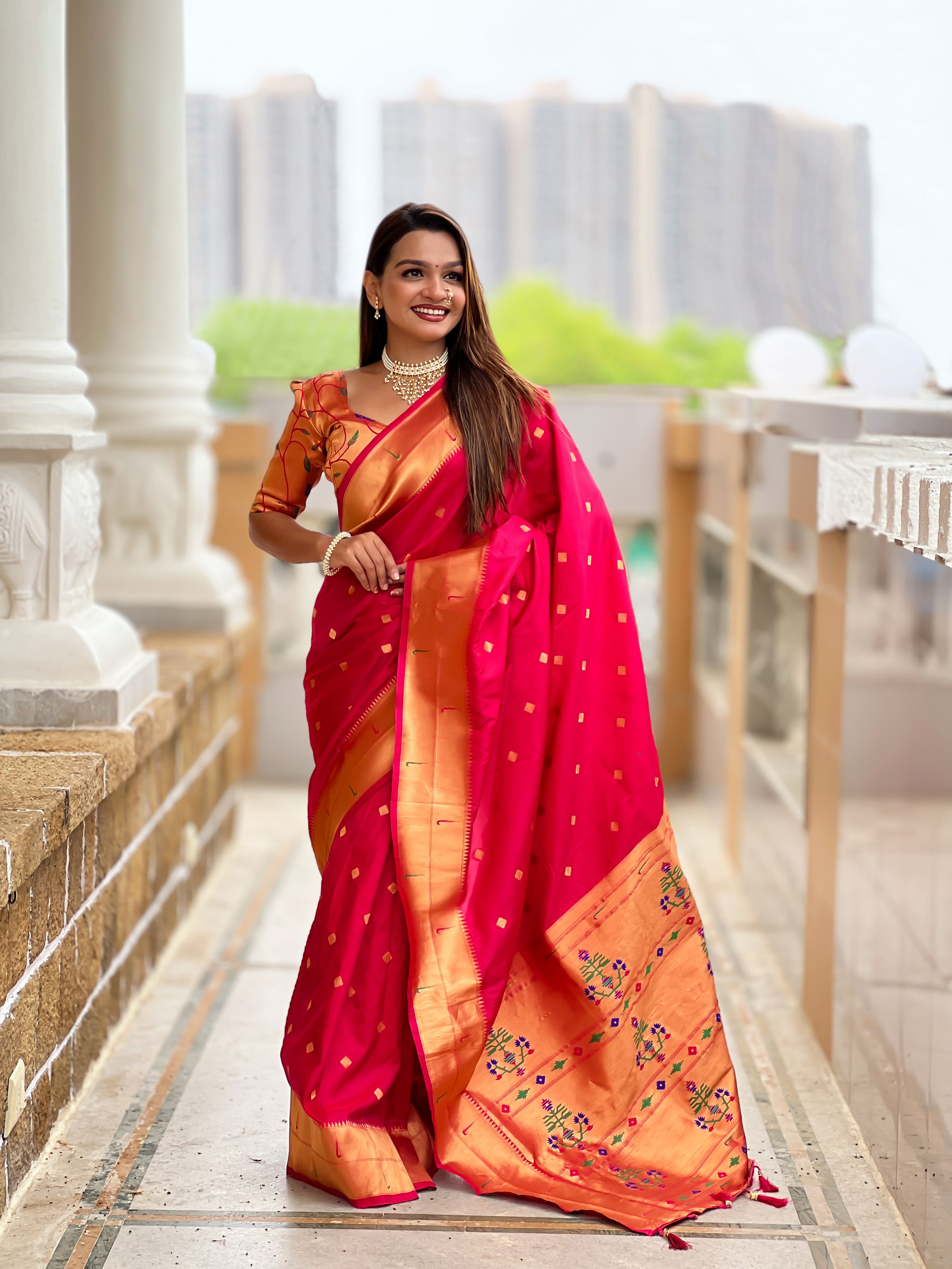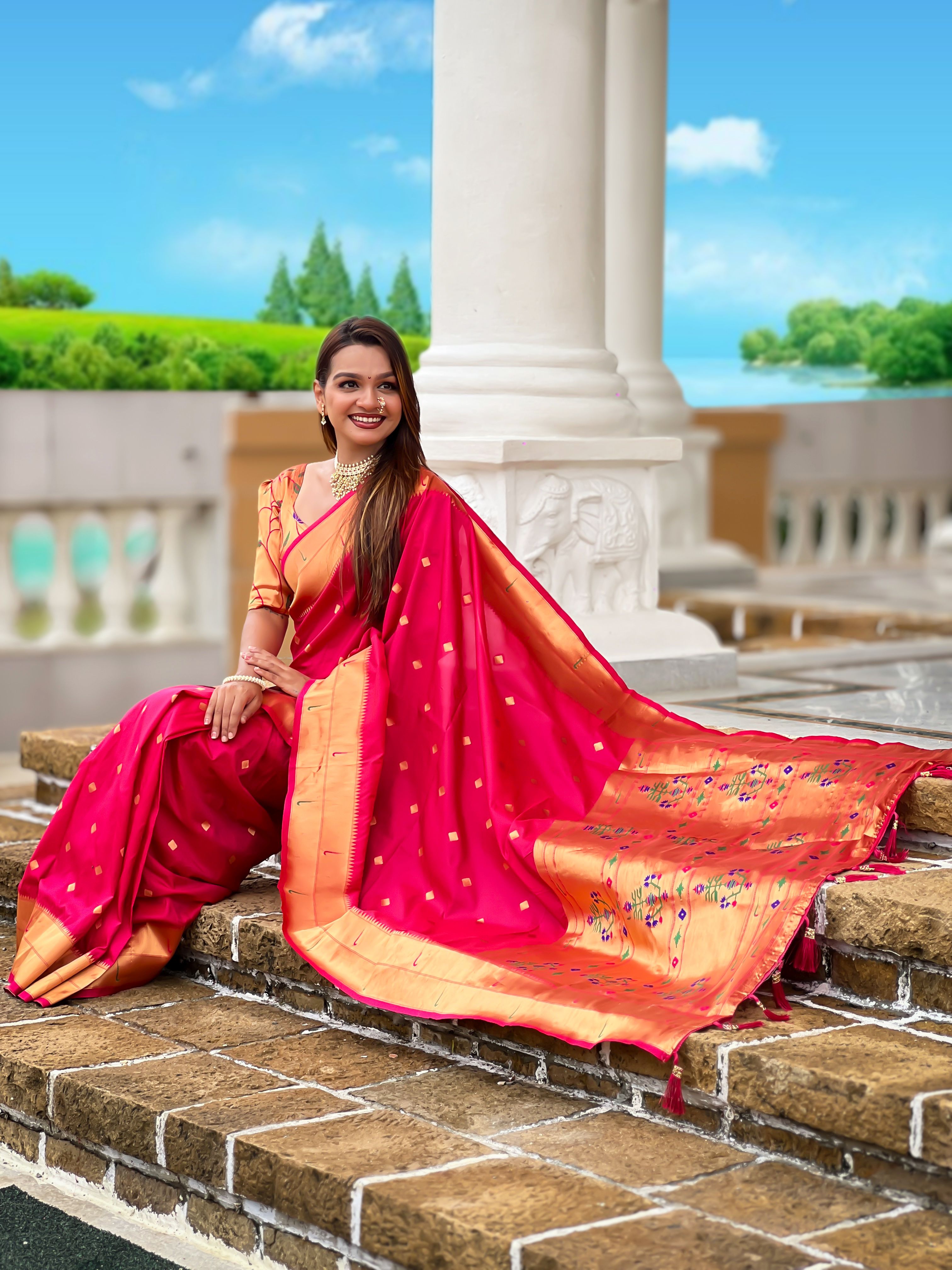 Pink Color Paithani Silk Woven Jacquard Jari Designer Ethnic Saree