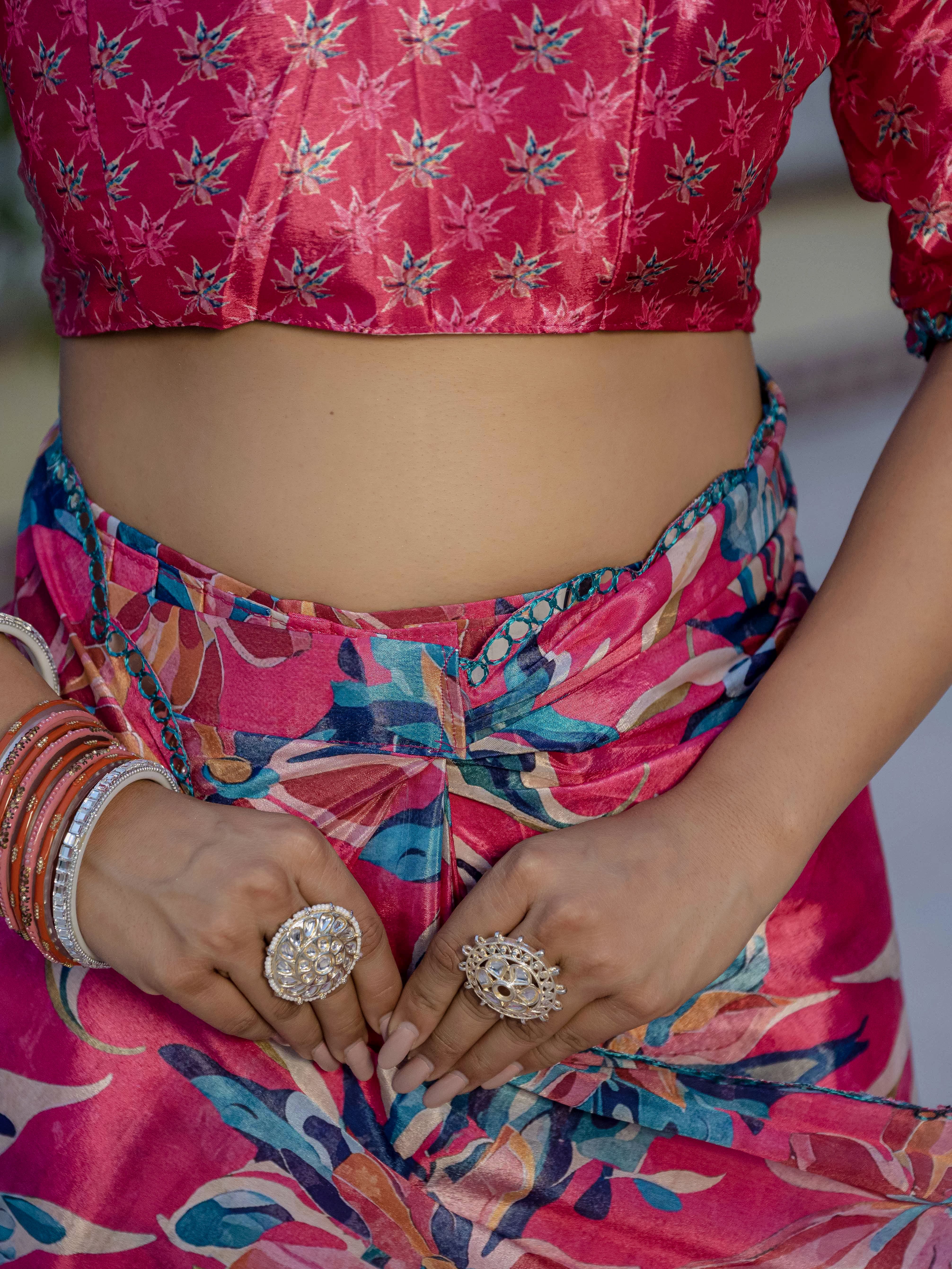 Pink Color Stylish Ready To Wear Chinon Fabric Partywear Saree