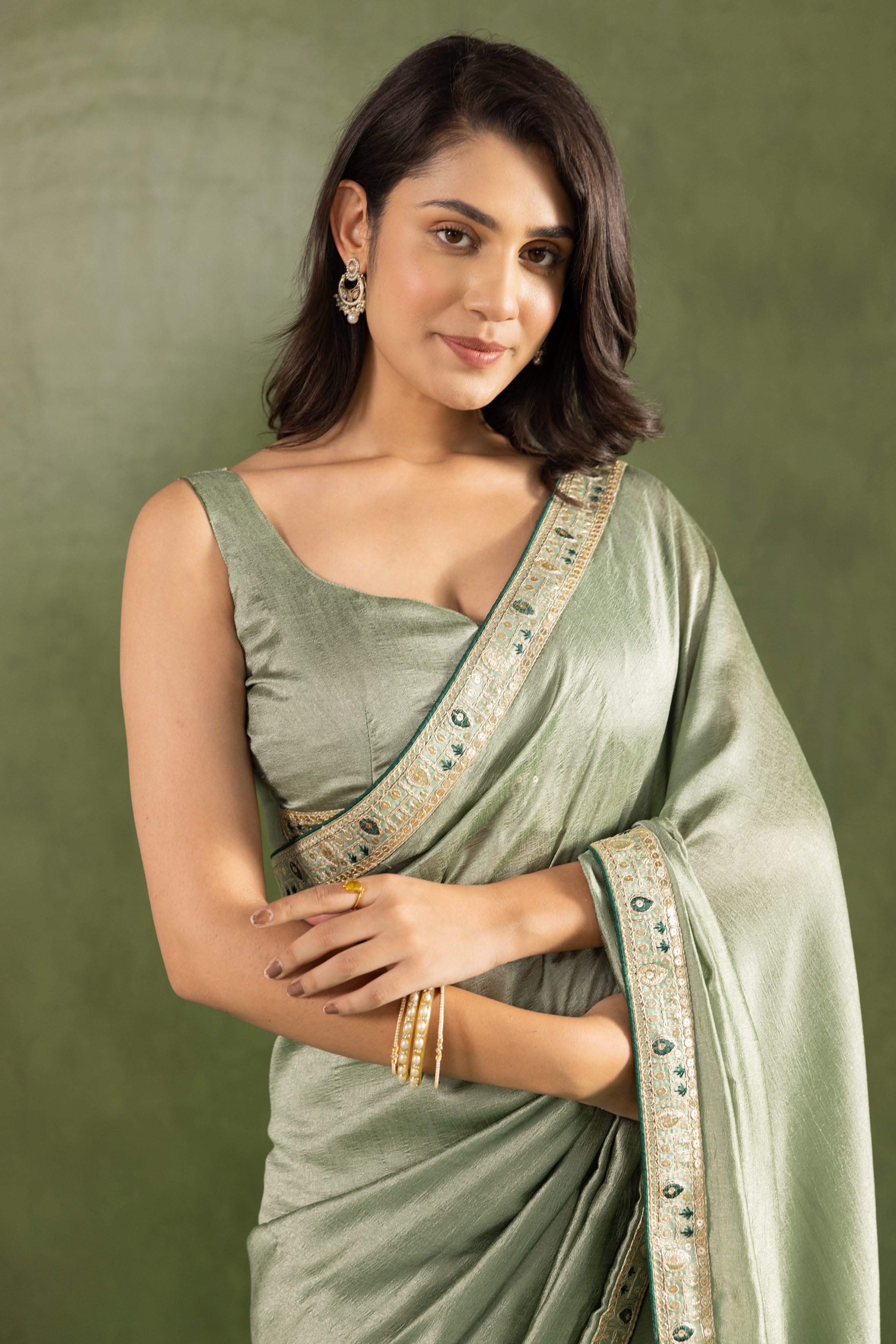 Pista Color Chiffon Fabric Ready To Wear Designer Solid Partywear Saree