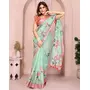 Pista Color Linen Cotton Fabric Festive Looks Printed Saree