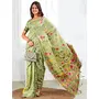 Pista Color Linen Cotton Woven Jacquard Designer Fancy Saree