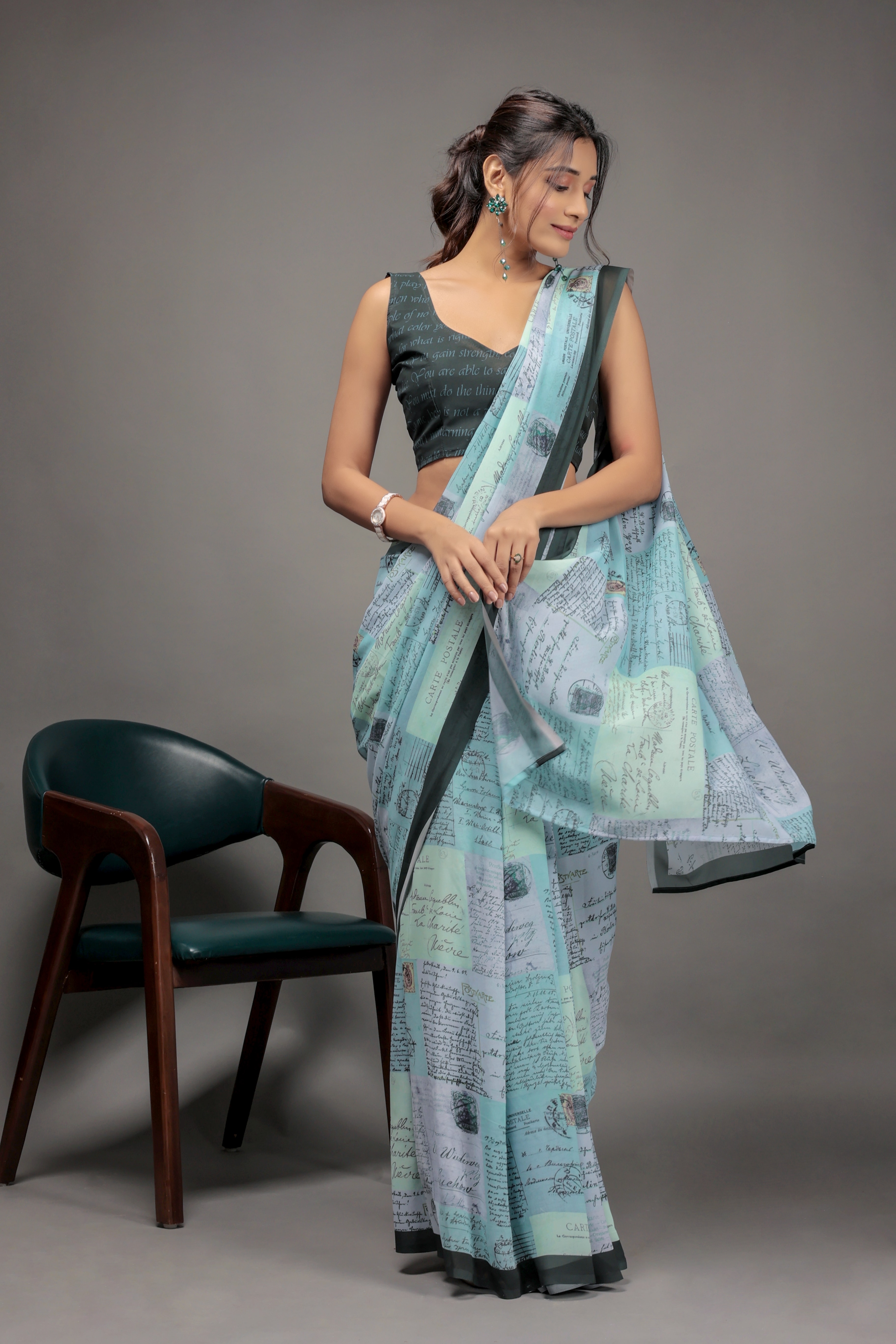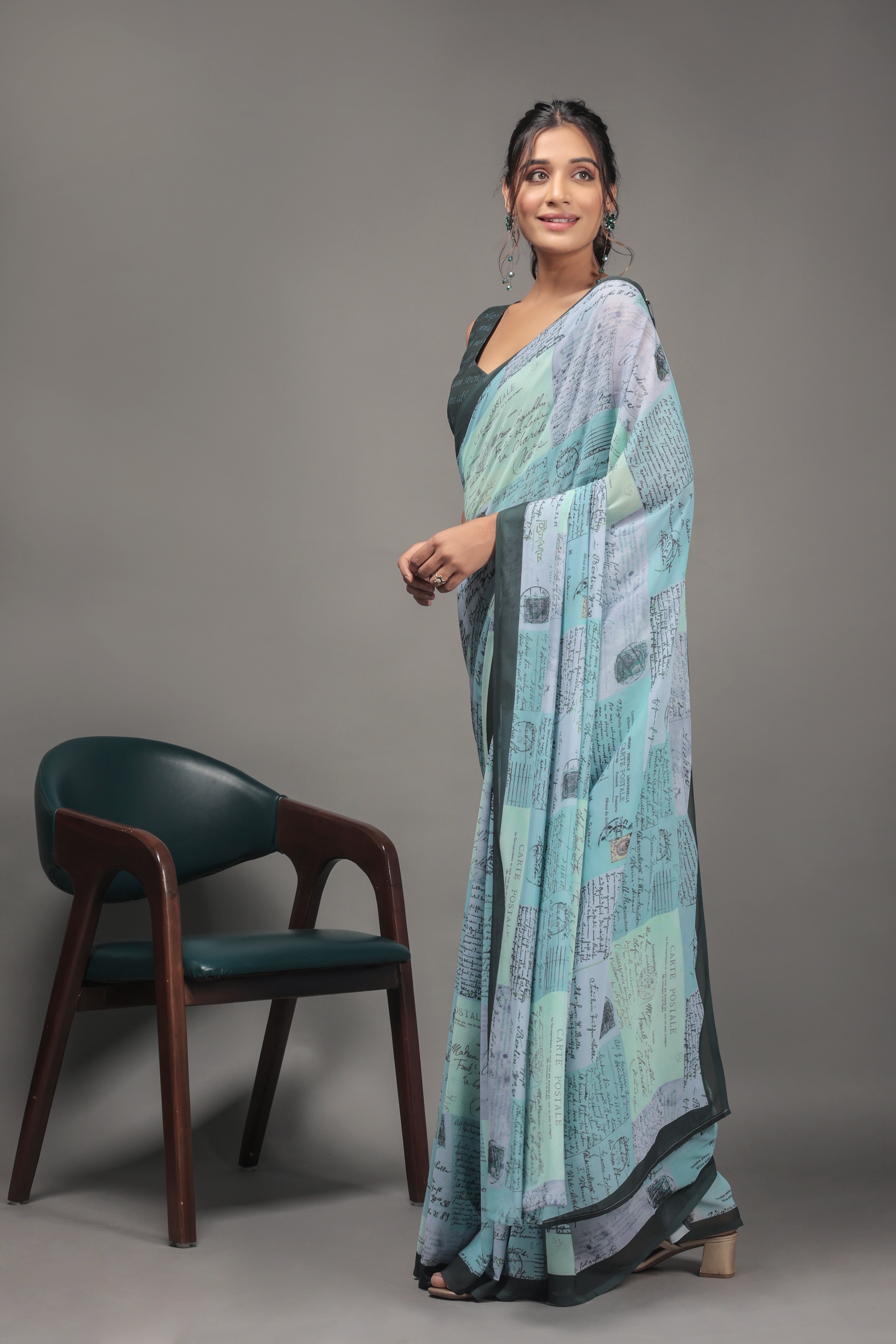Pista Green Color Georgette Fabric Designer Printed Graceful Ethnic Saree