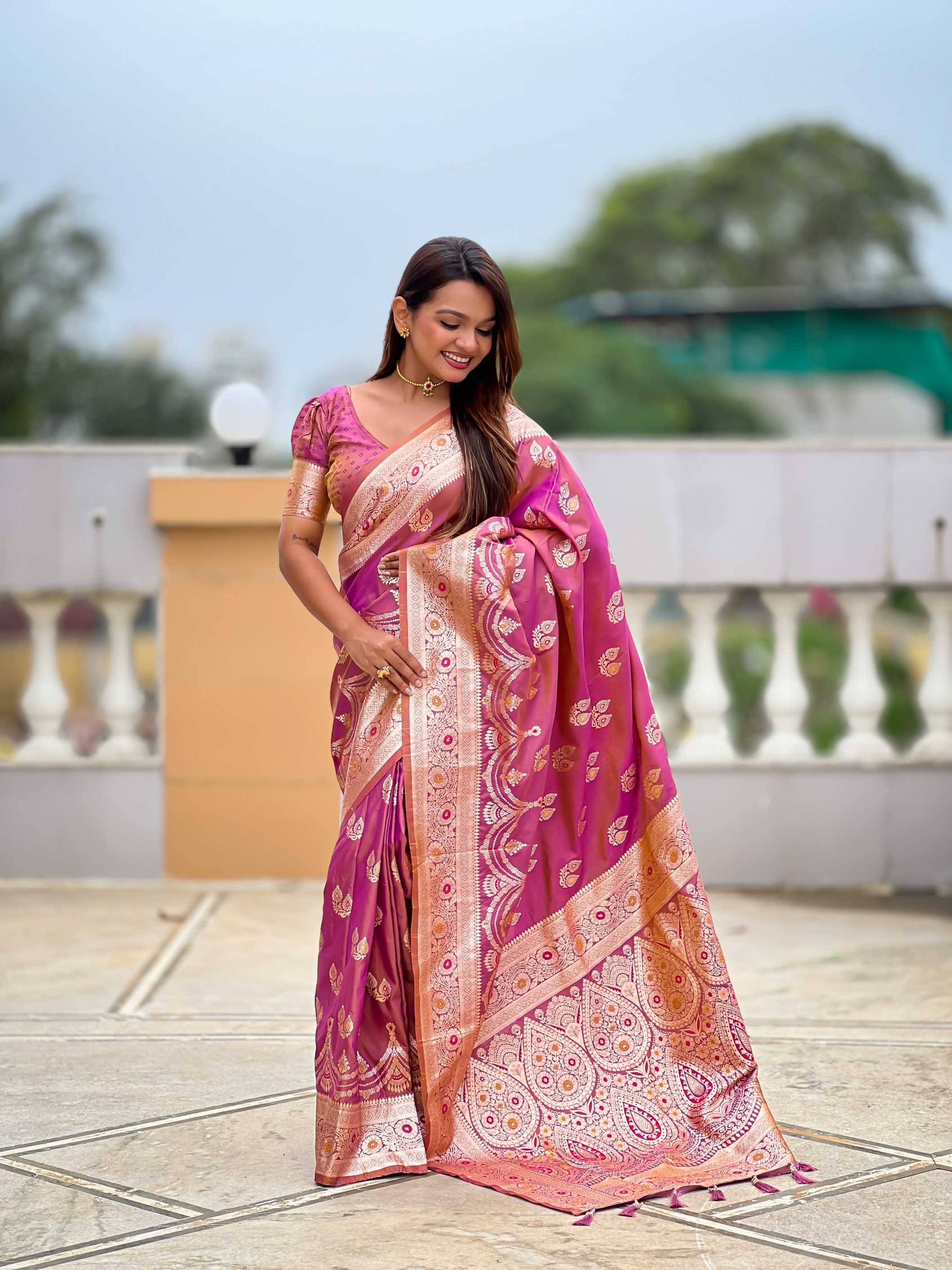 Purple Color Banarasi Silk Saree With Woven Jacquard Designer Ethnic Style