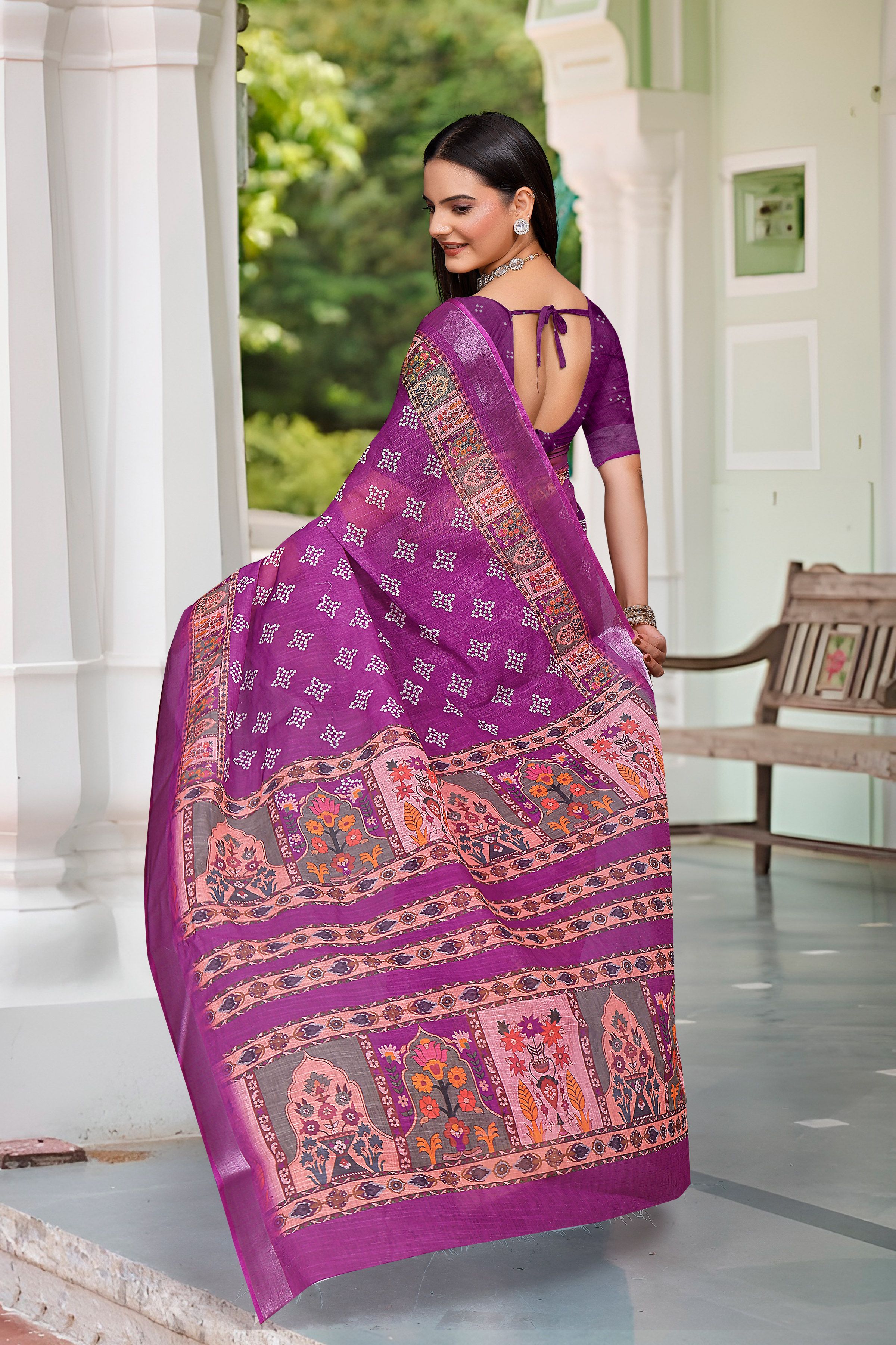 Attractive These Festive Saree in Fine Colored.These Saree Are Linen Cotton And Blouse is Fabricated On Linen Cotton Pair.Its Beautified With Woven Jari Border With Designer Digital Printed.