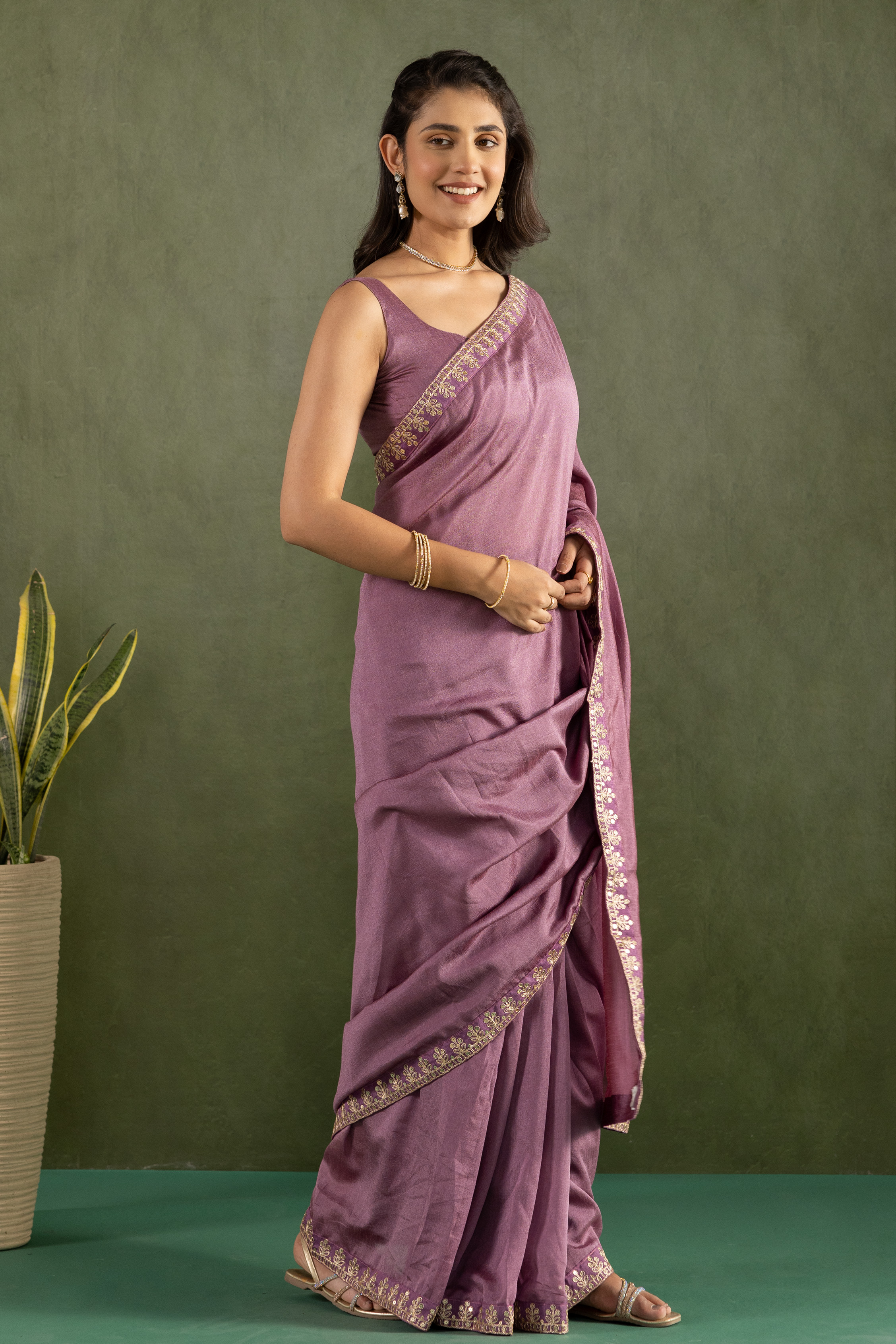 Purple Color Chiffon Fabric Ready To Wear Saree For Graceful Bollywood Style Saree