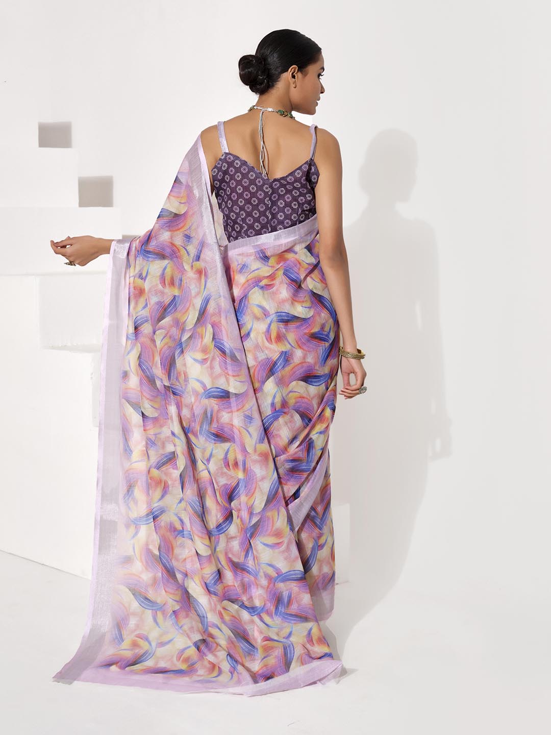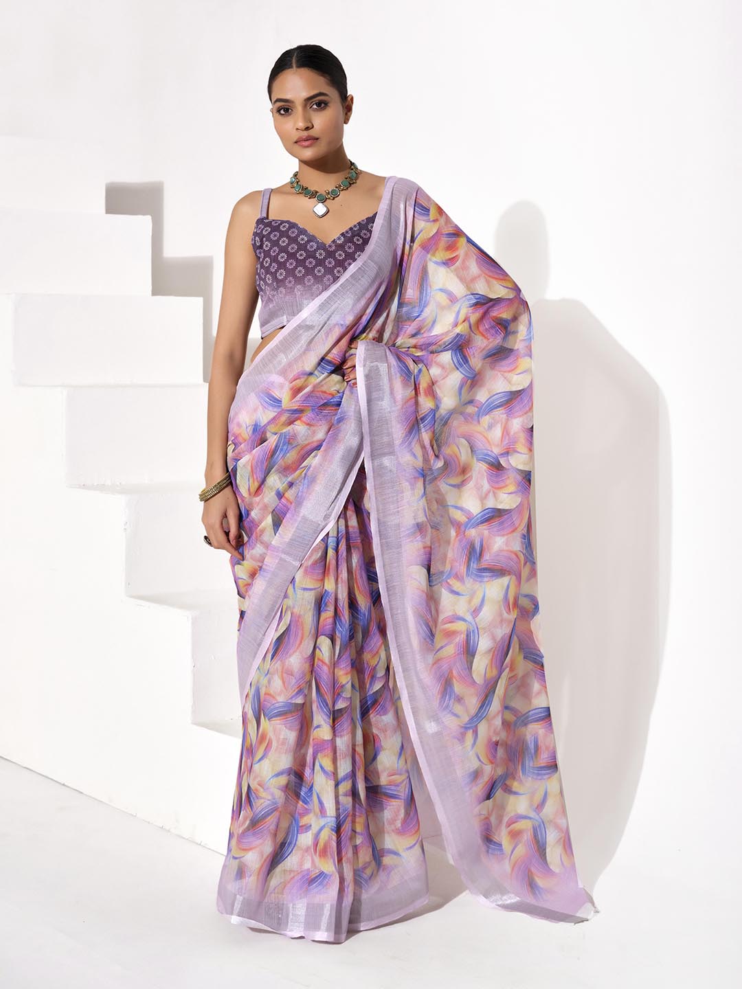 Purple Color Cotton Blend Fabric Beautiful Designer Printed Saree