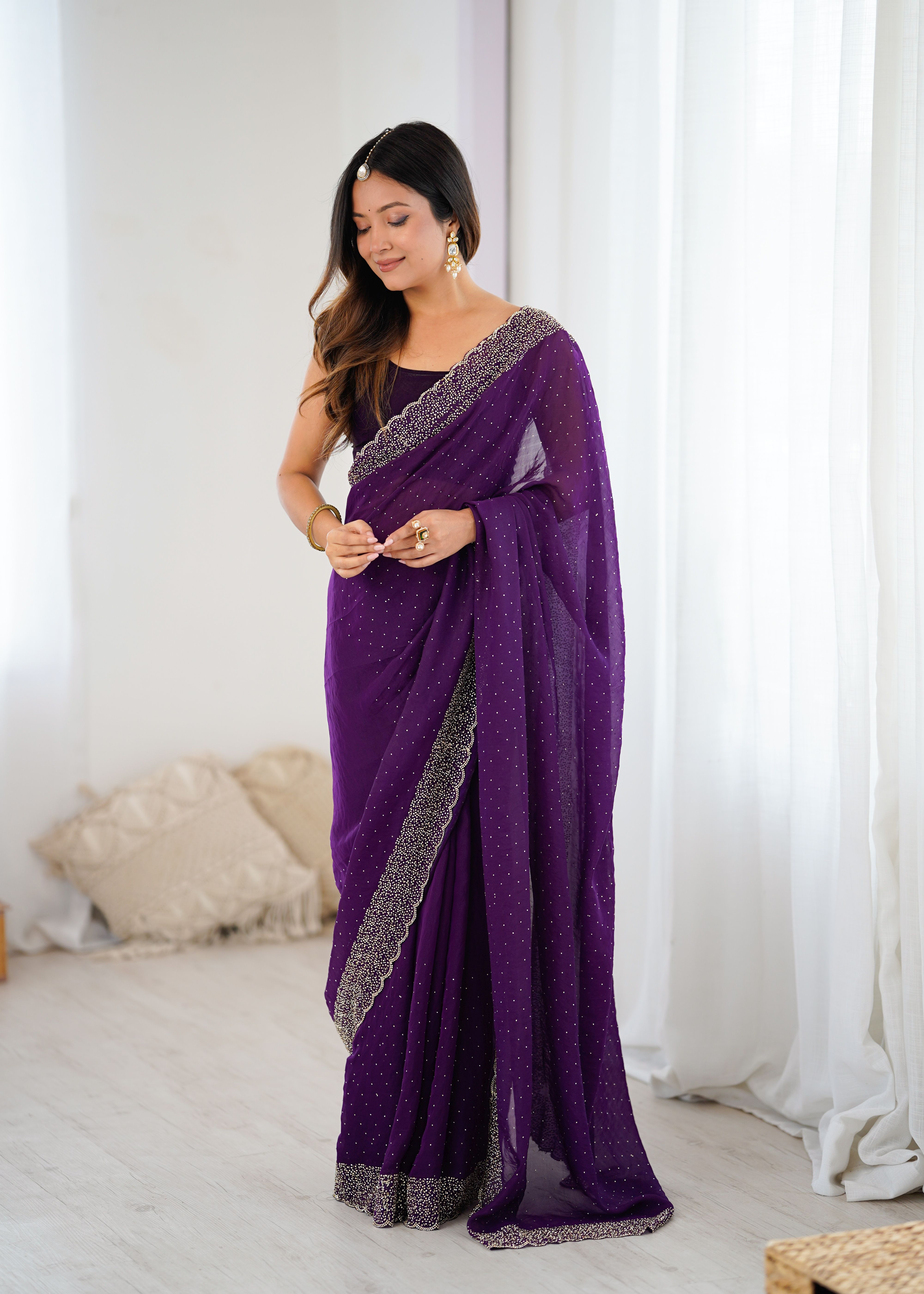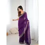 Purple Color Fendy Satin Fabric Zarkan Hand Work Designer Bollywood Style Saree