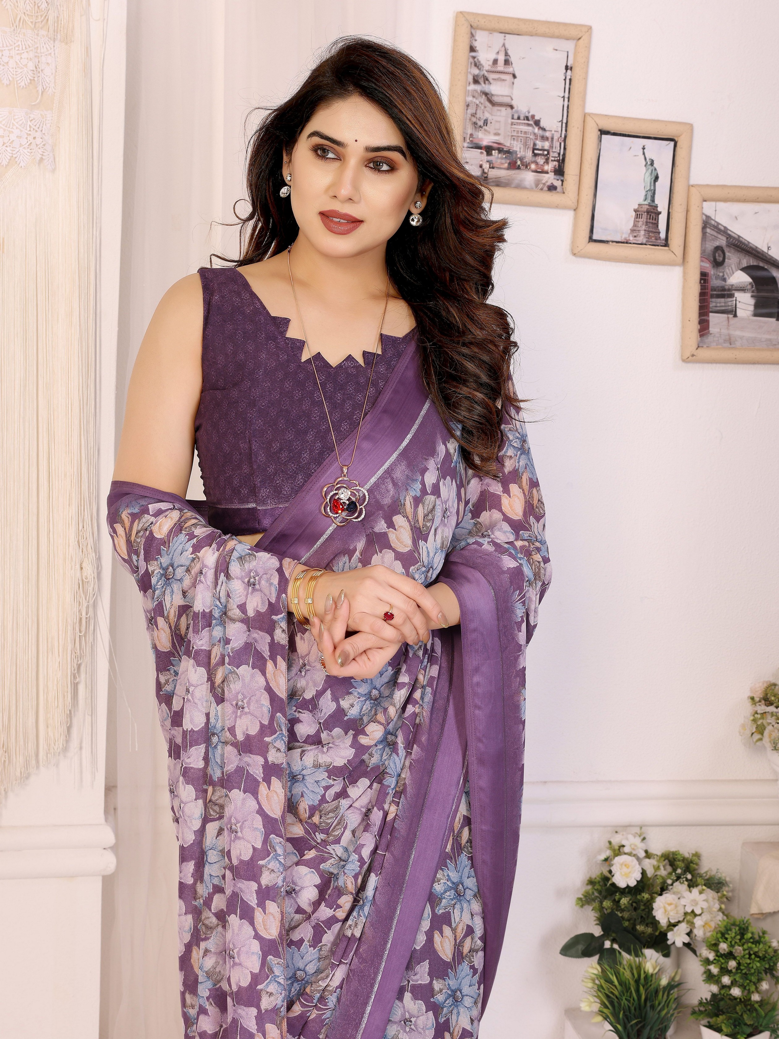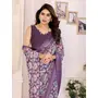 Purple Color Moss Satin Patta Designer Flower Printed Ceremonial Saree