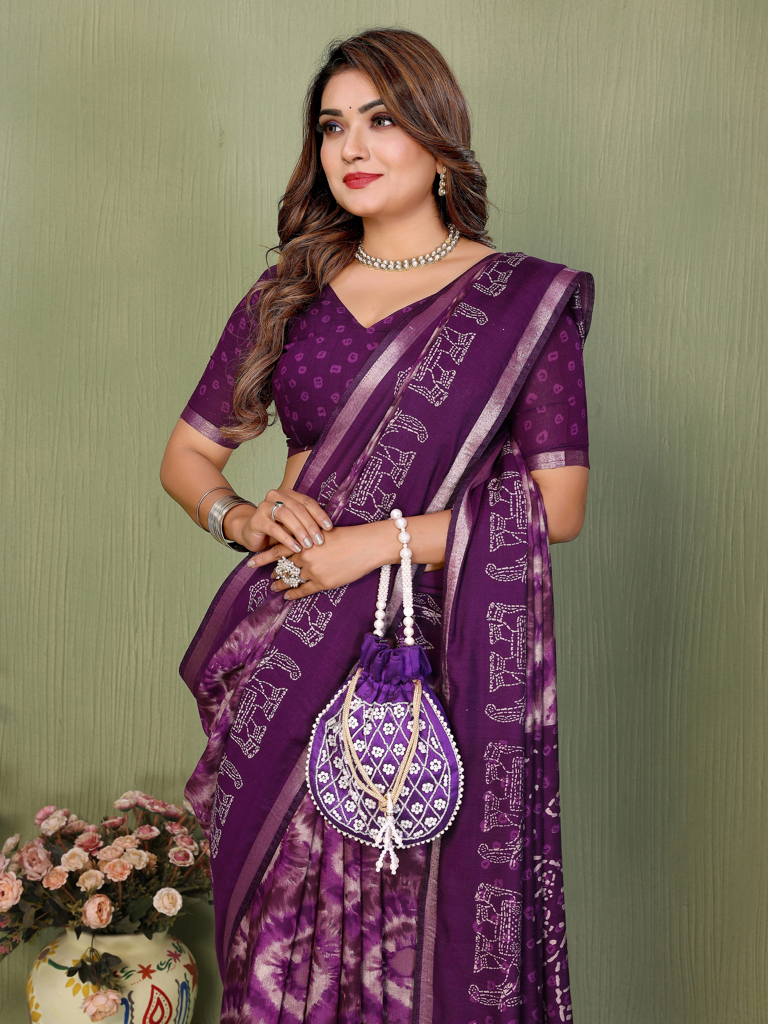 Purple Color Mul Cotton Fabric Designer Printed Festive Special Saree