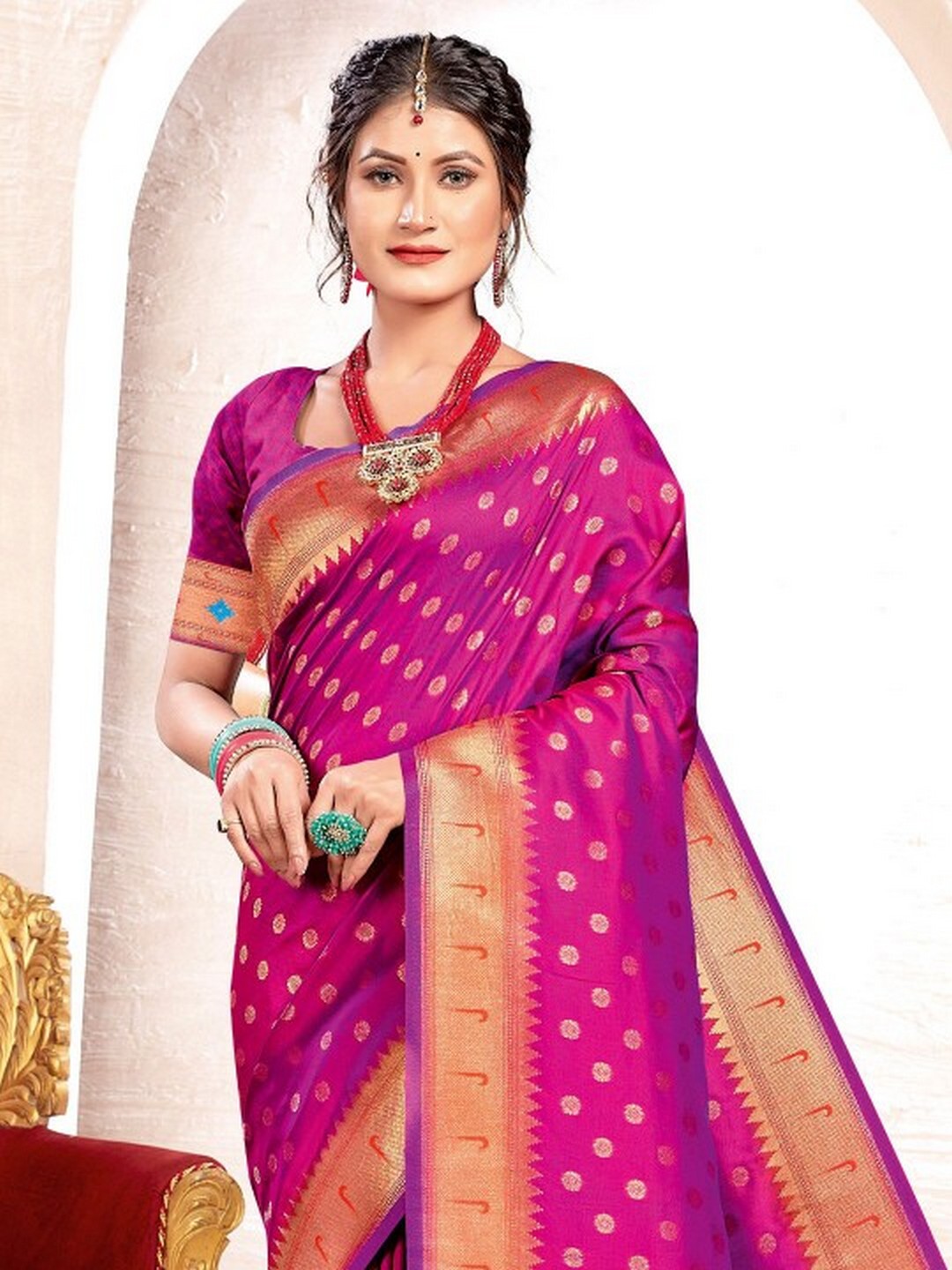 Attractive These Festive And Party Wear Saree in Fine Colored.These Saree And Blouse is Fabricated On Paithani Silk.Its Beautified With Heavy Woven Meenakari Designer.