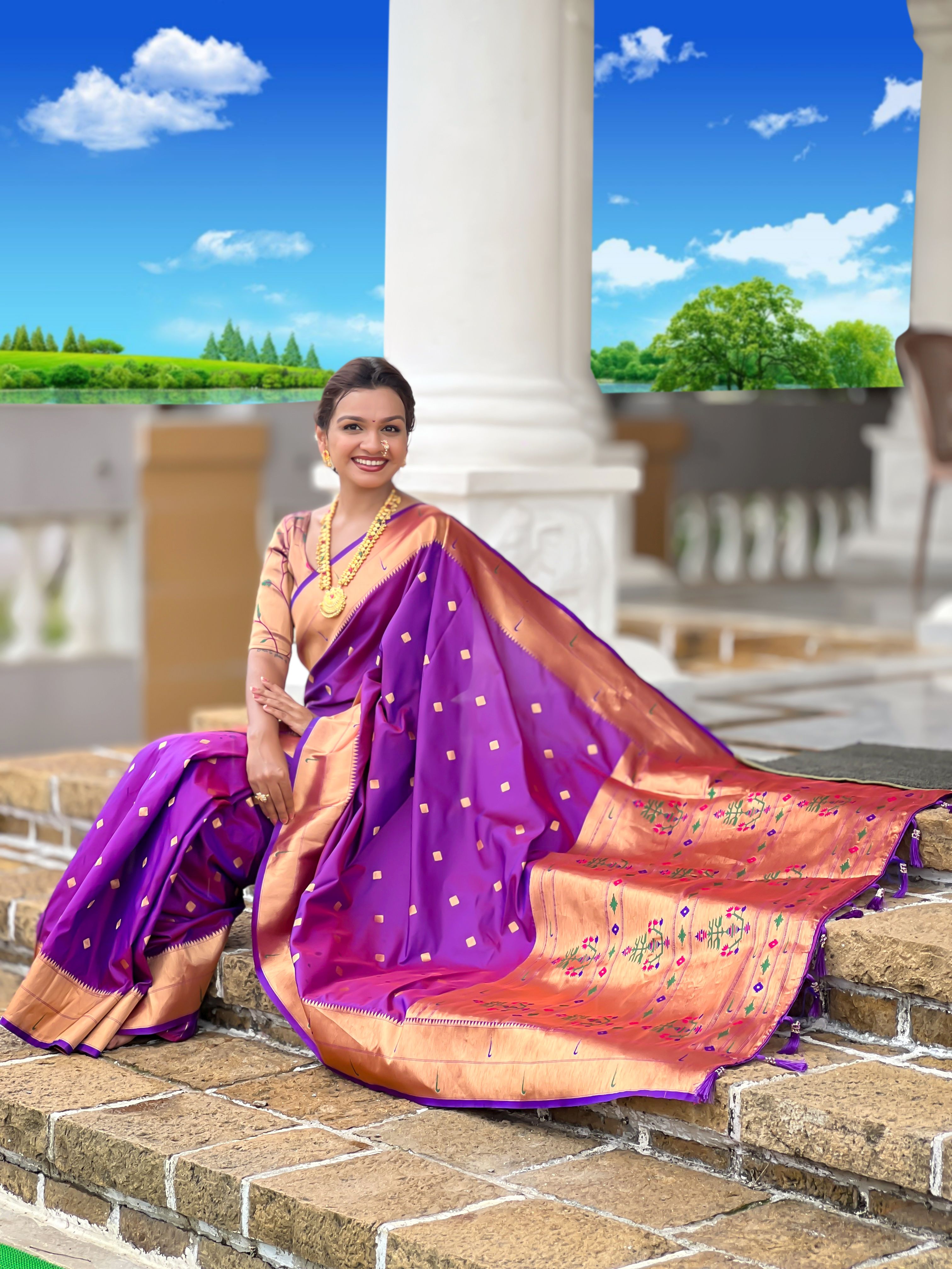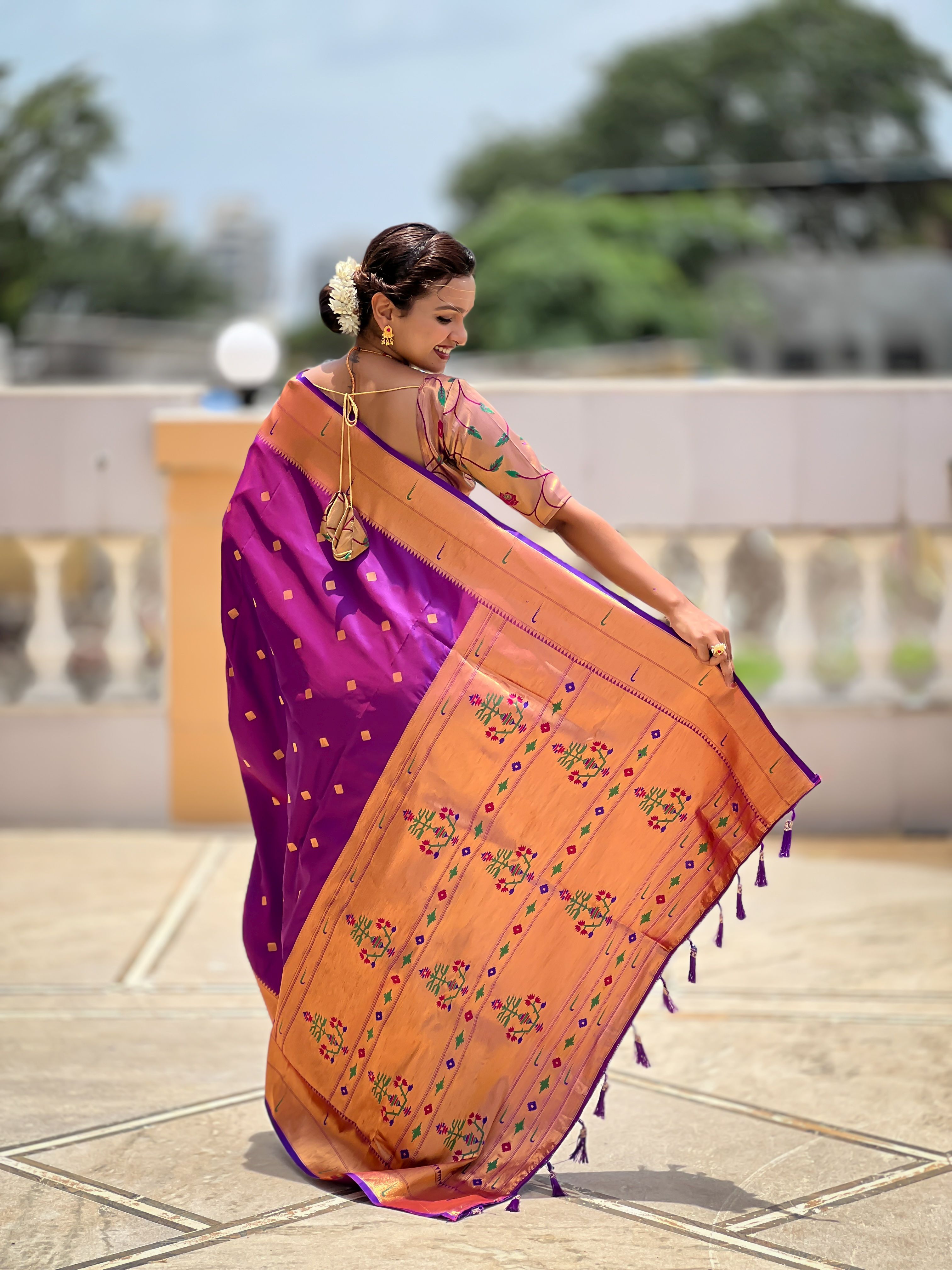 Purple Color Paithani Silk Woven Jacquard Jari Designer Ethnic Saree