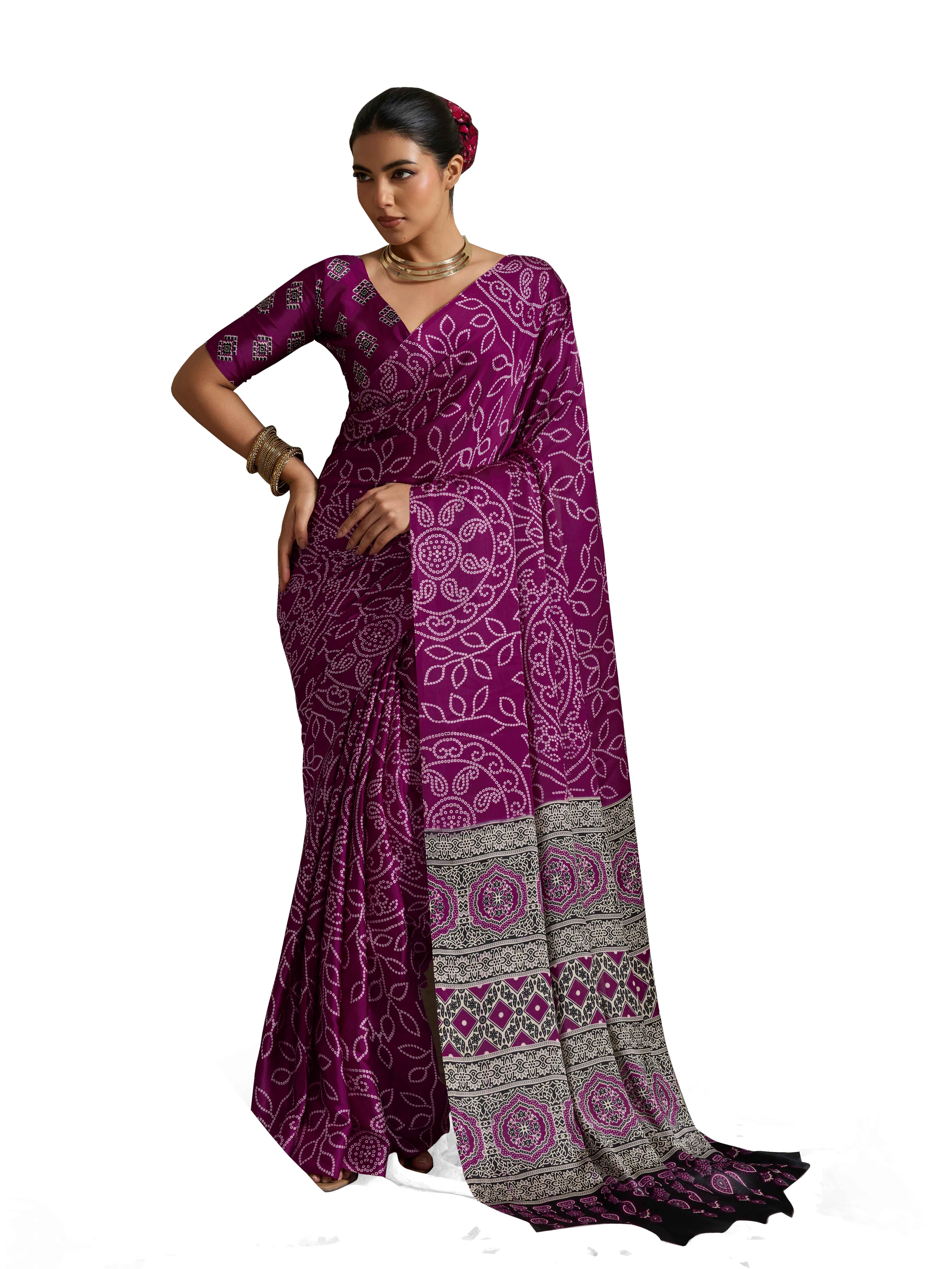 Purple Color Rich Looks Designer Bandhani Printed Elegant Festive Saree