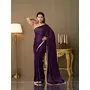Purple Color Satin Fabric Fancy Designer Bollywood Party Saree