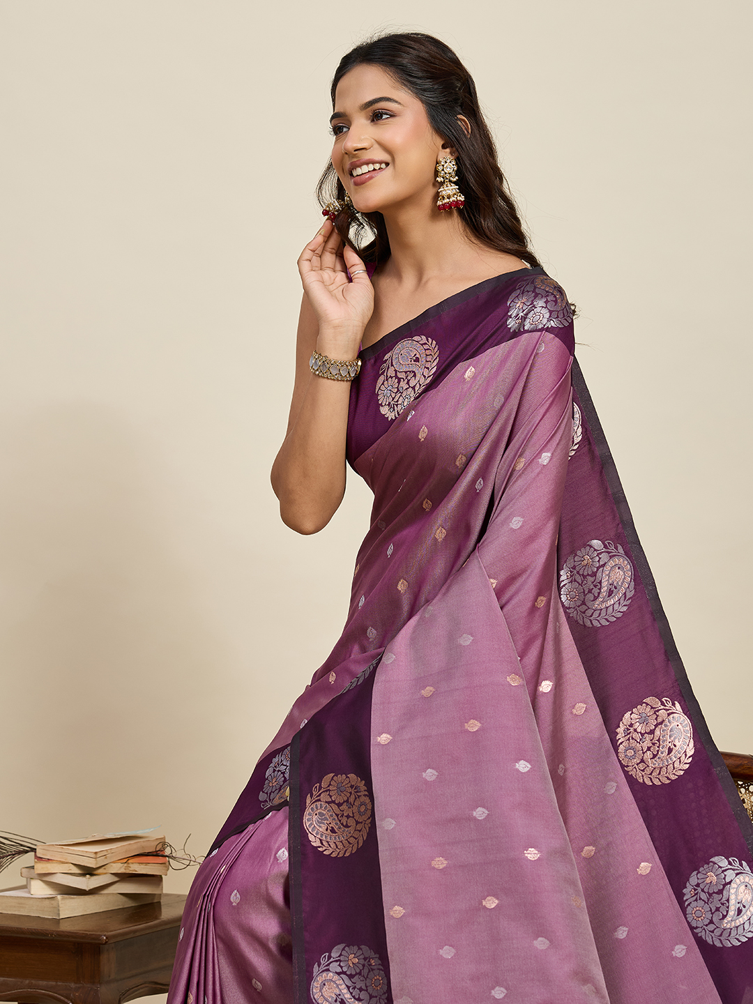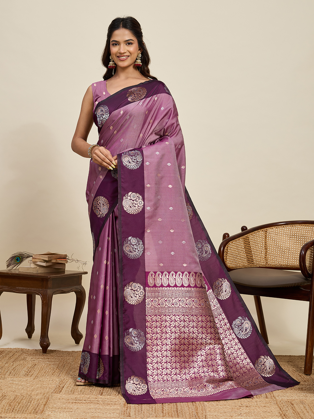 Purple Color Soft Silk Fabric Woven Jari Designer Ceremonial Partywear Saree