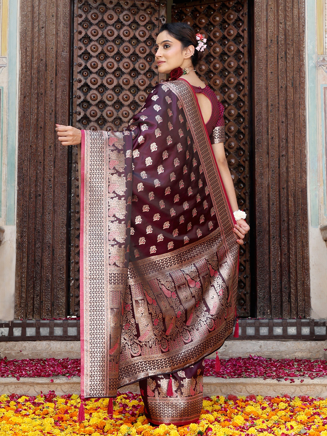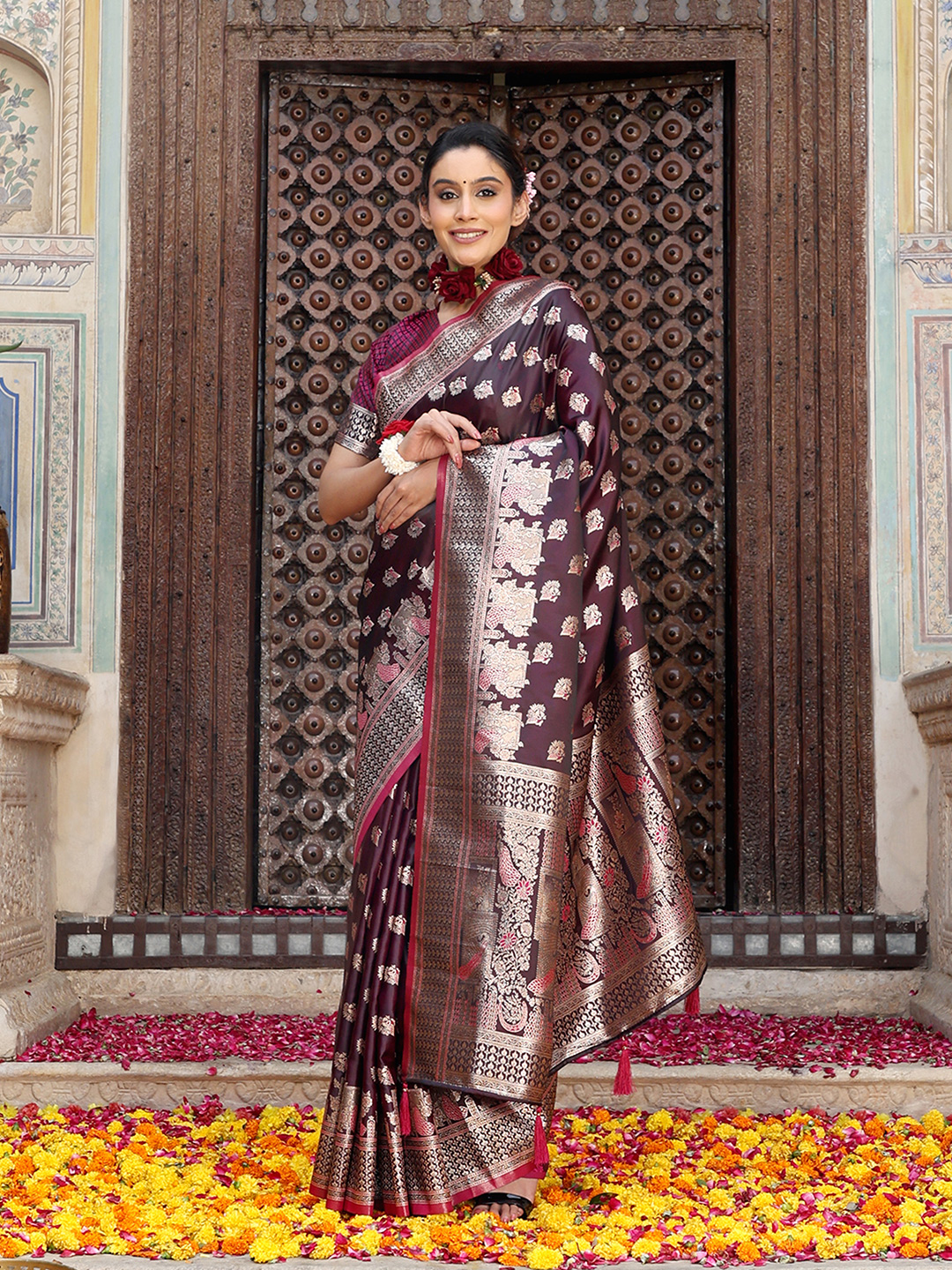 Purple Color Woven Designer Ethnic Silk Fabric Graceful Partywear Saree
