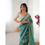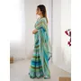Rama Color Chiffon Fabric Designer Laheriya Printed Saree with Mirror Cut Work