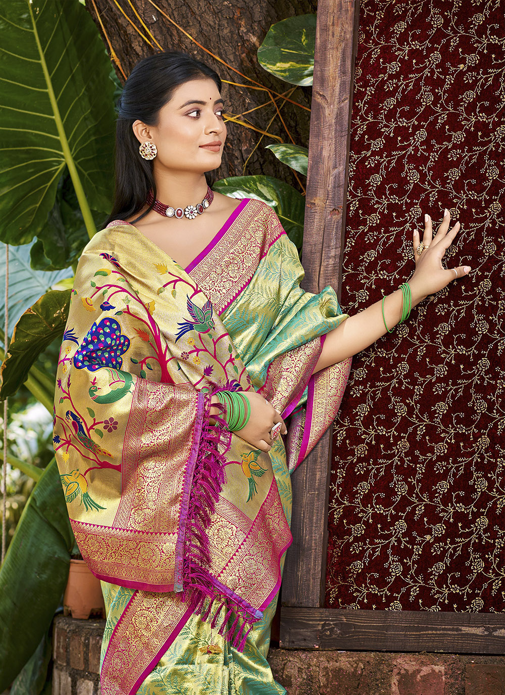 Rama Color Kanjivaram Silk Woven Jari Designer Ethnic Saree