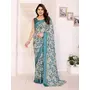 Rama Color Moss Satin Patta Designer Flower Printed Ceremonial Saree
