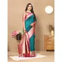 Rama Color Soft Silk Fabric Ethnic Weaving Jacquard Designer Partywear Heavy Saree