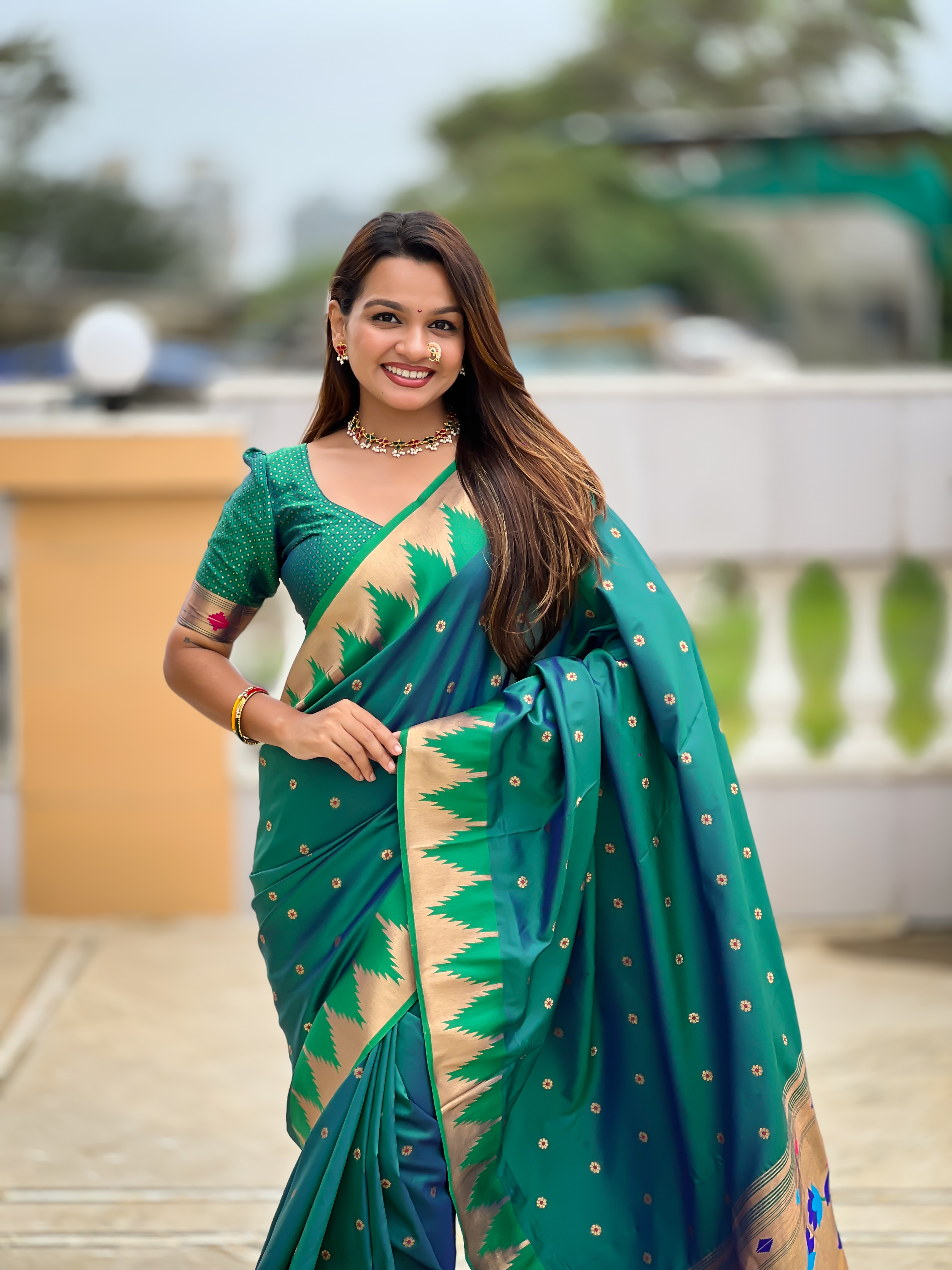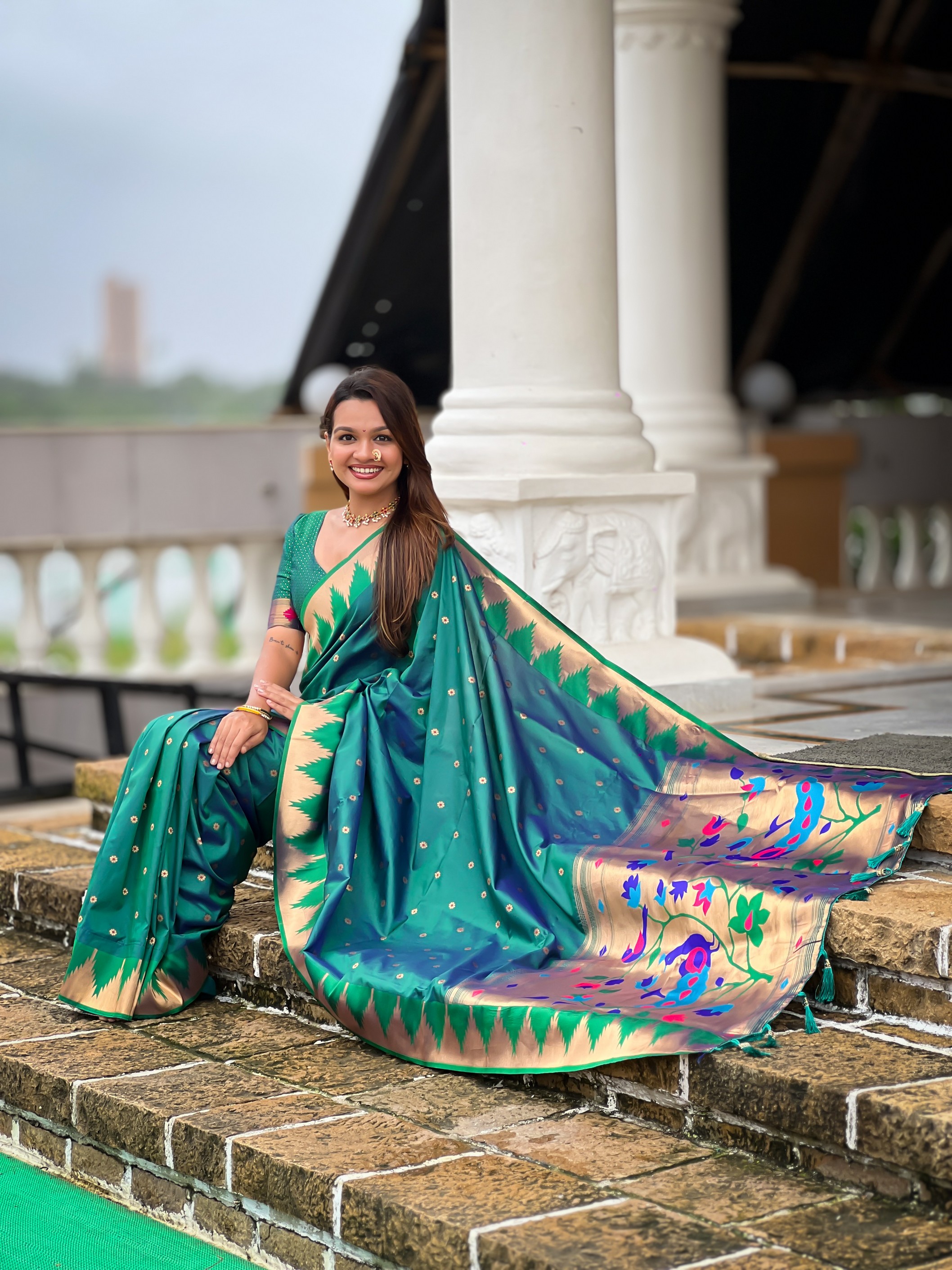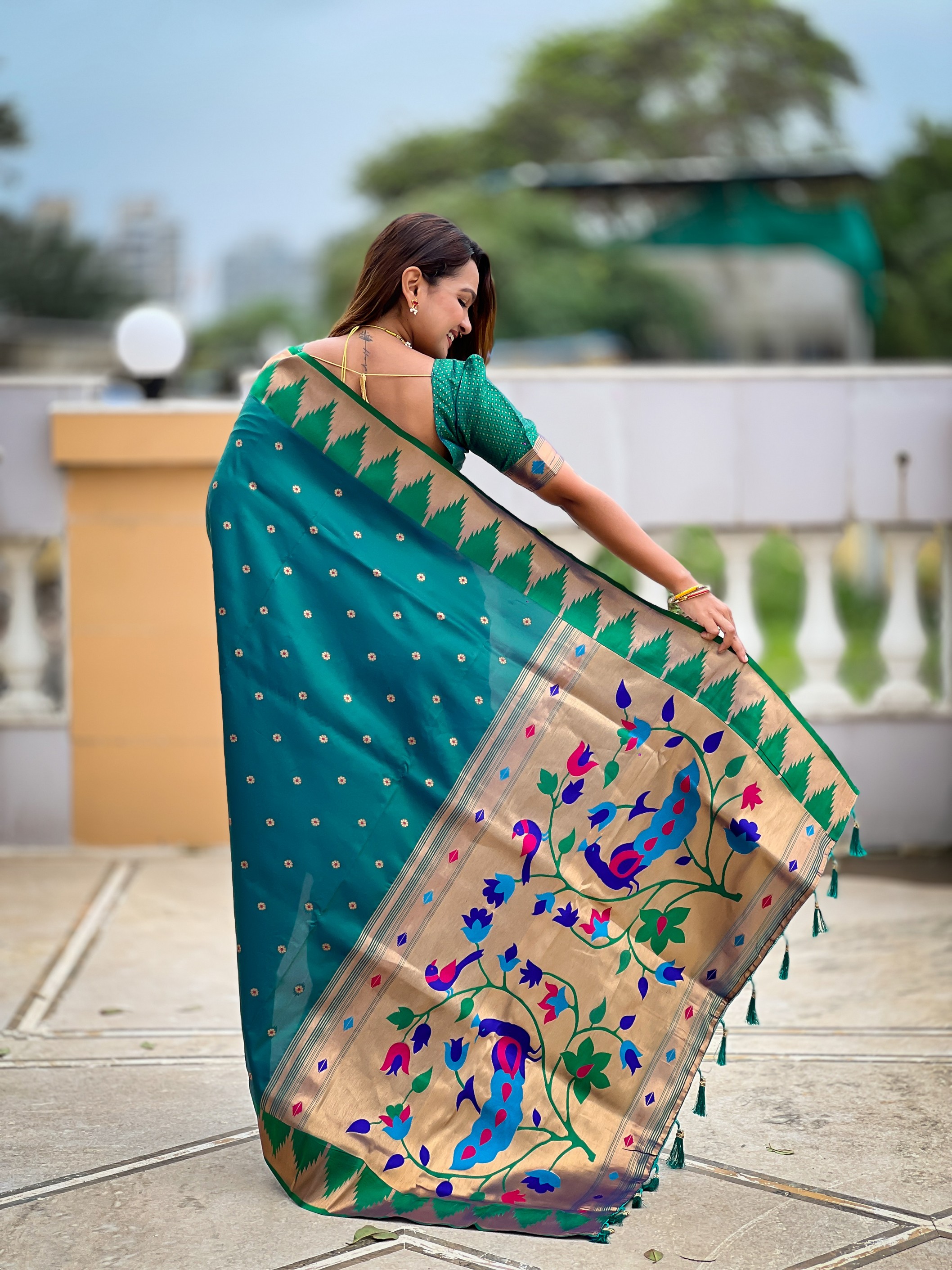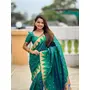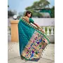 Rama Color Sophisticated Paithani Silk Fabric Woven Jacquard Meenakari Designer Saree