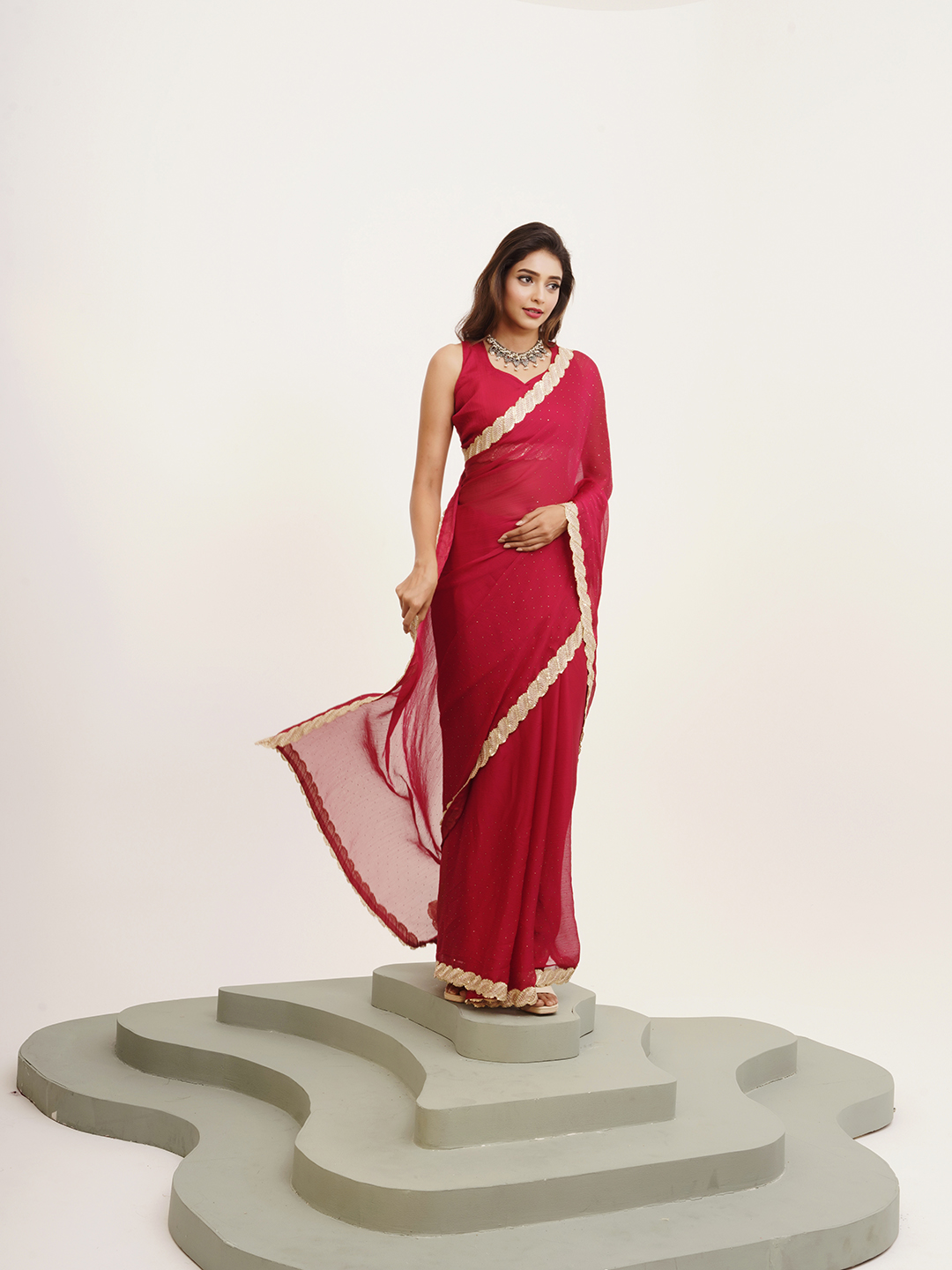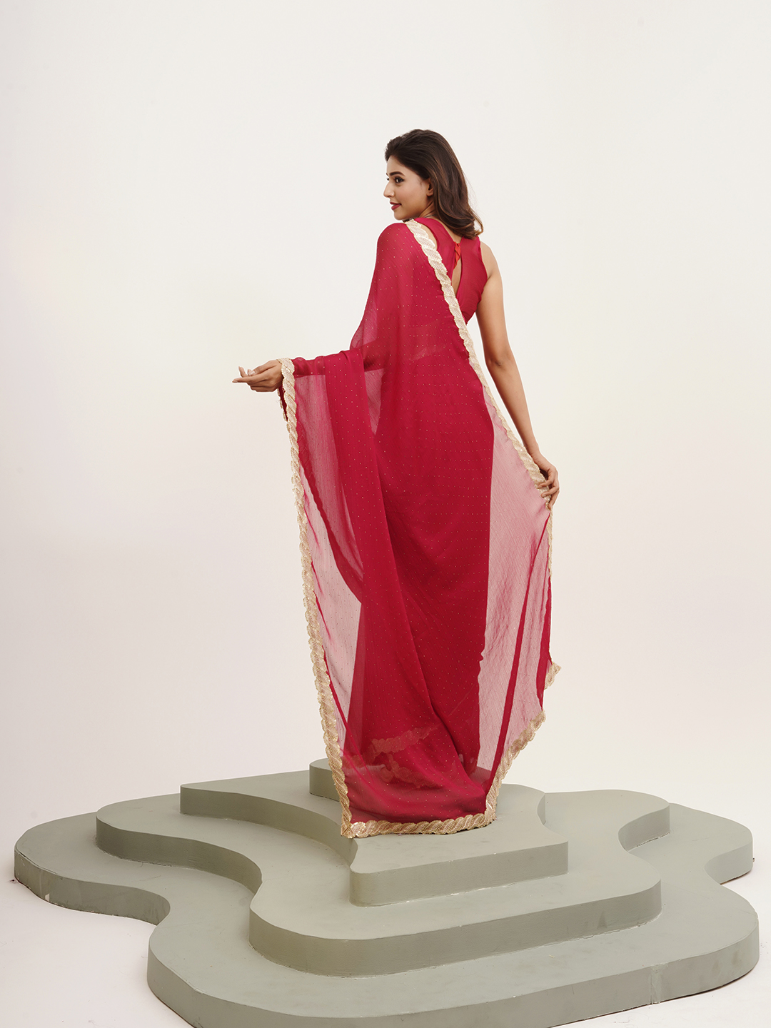 Red Color Beautiful Partywear Embellished Sequinned Chiffon Saree