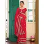Red Color Designer Satin Fabric Saree For Ceremonial Looks
