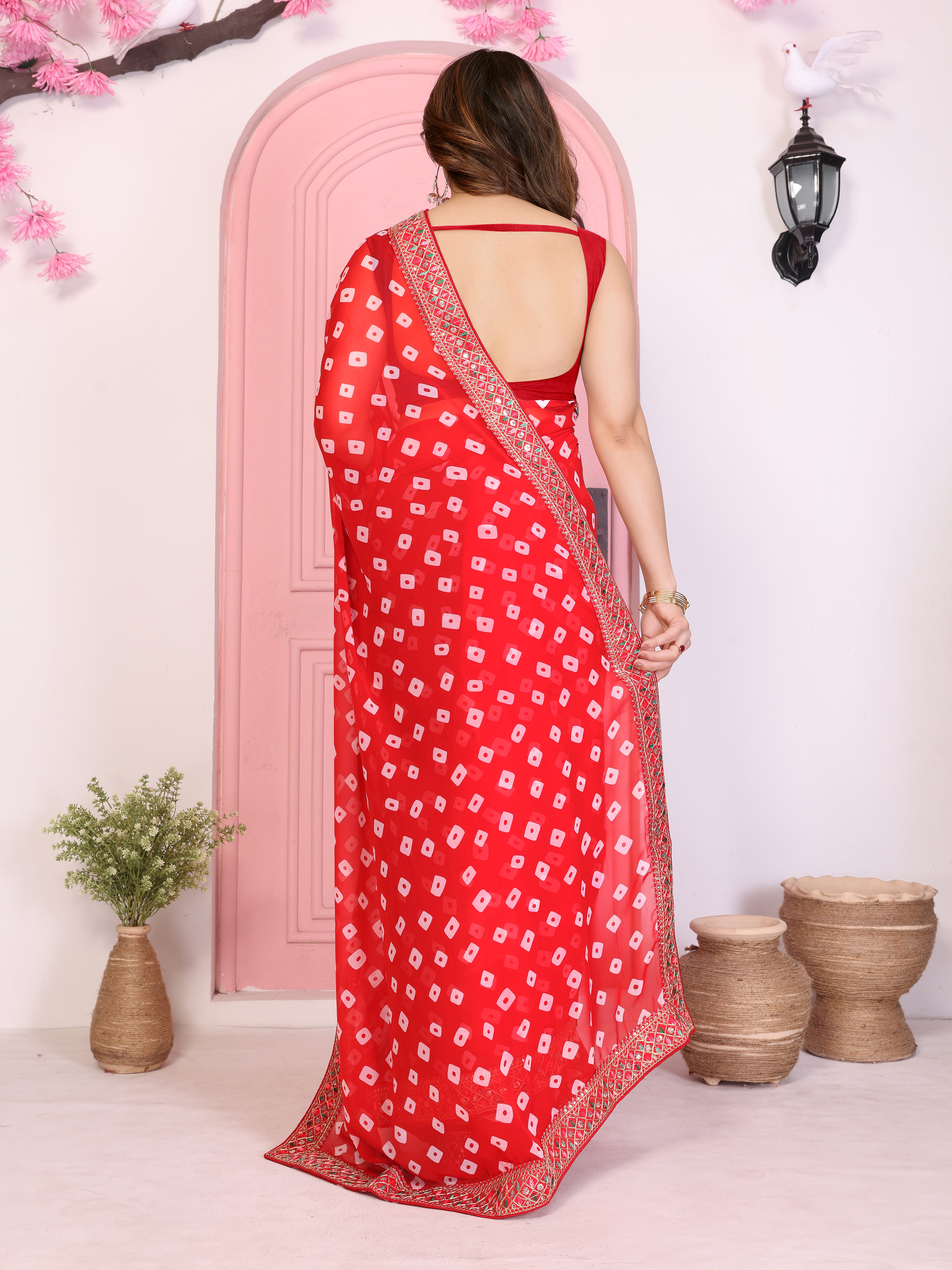 Red Color Georgette Fabric Embroidered Partywear Saree