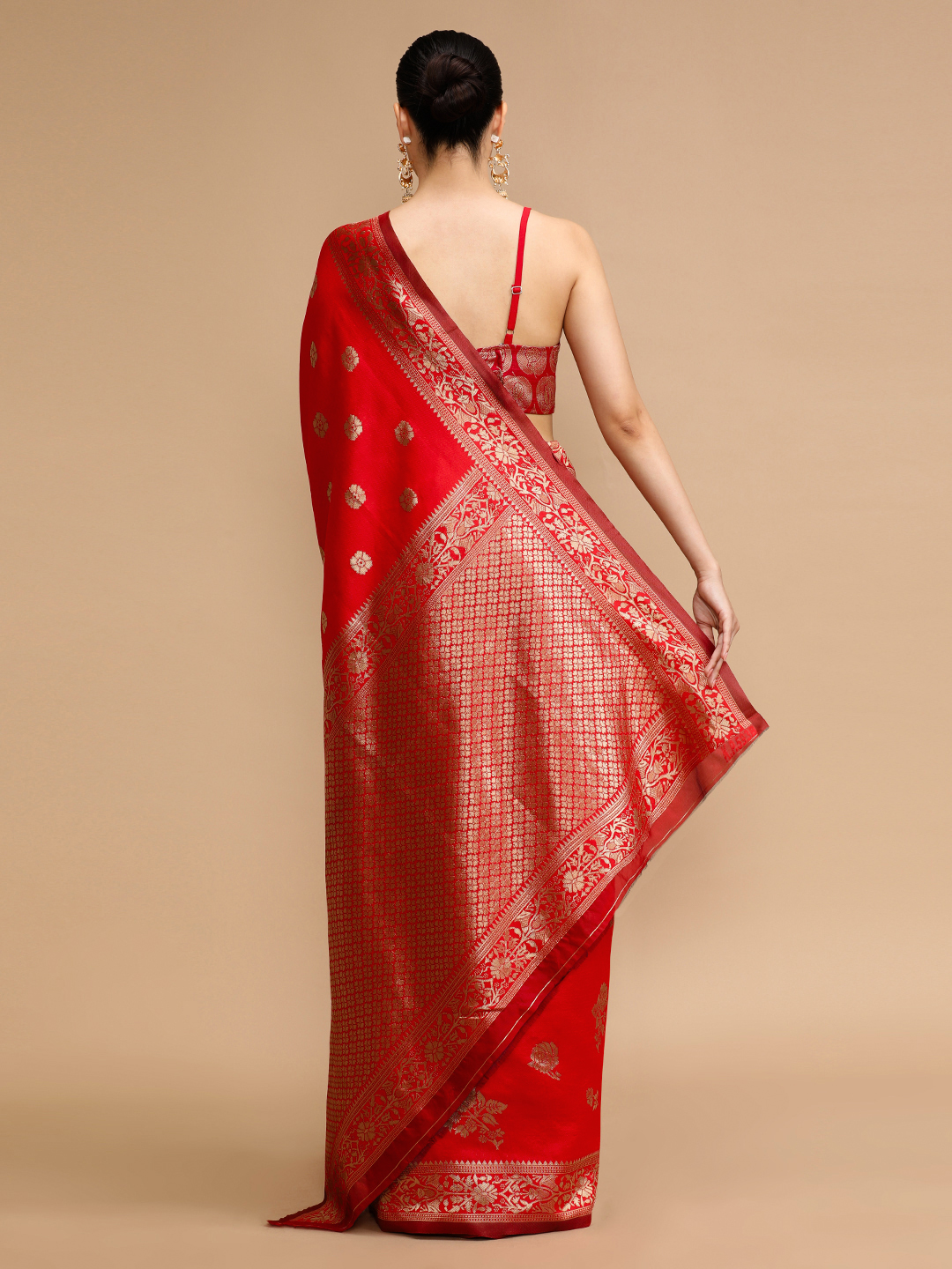 Red Color Lichi Silk Saree Woven Jacquard Designer For Ceremonial Looks
