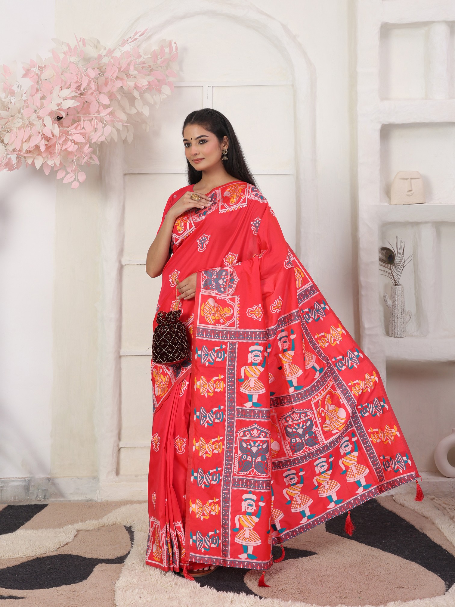 Red Color Silk Blended Woven Designer Graceful Ceremonial Saree