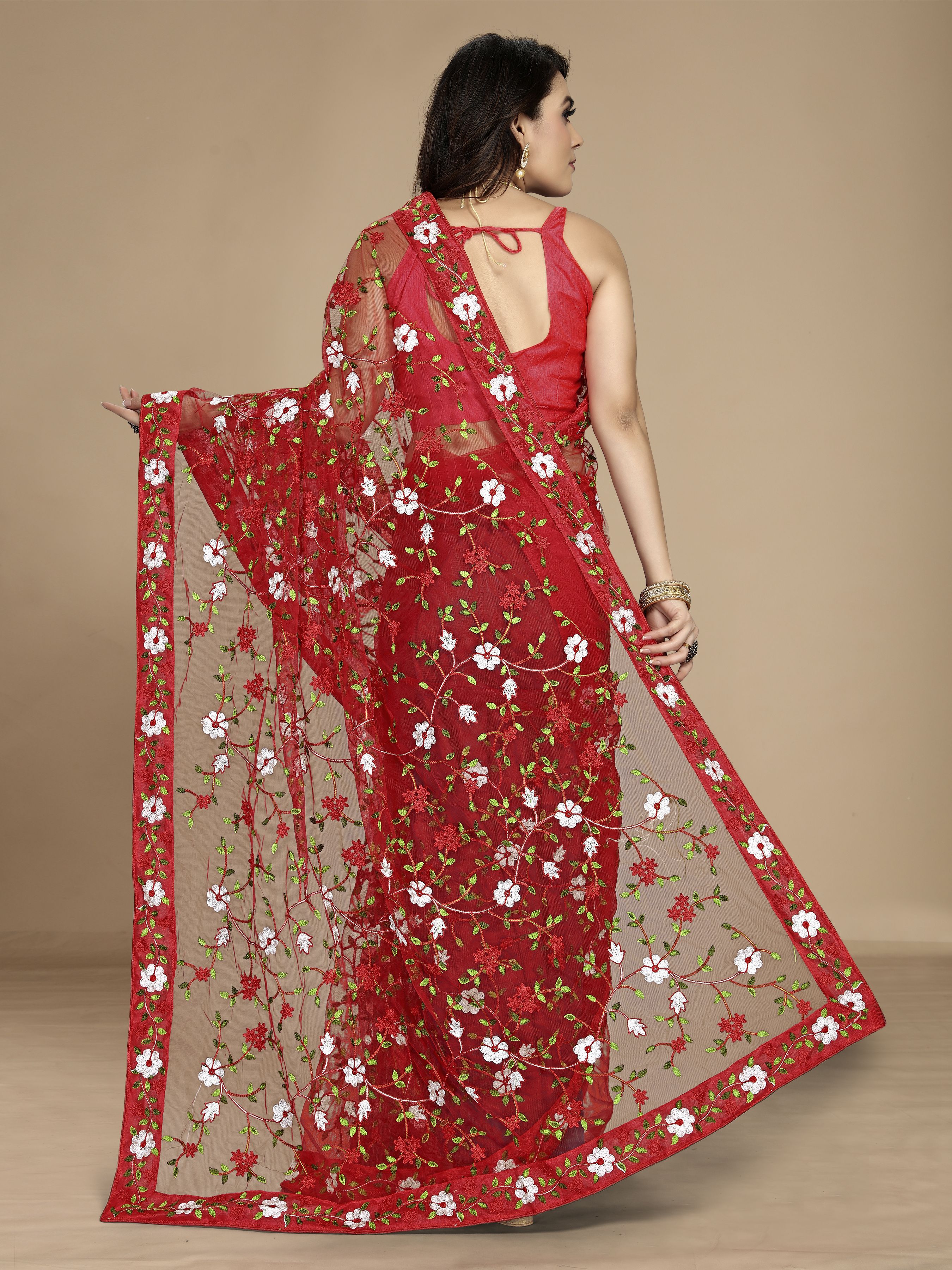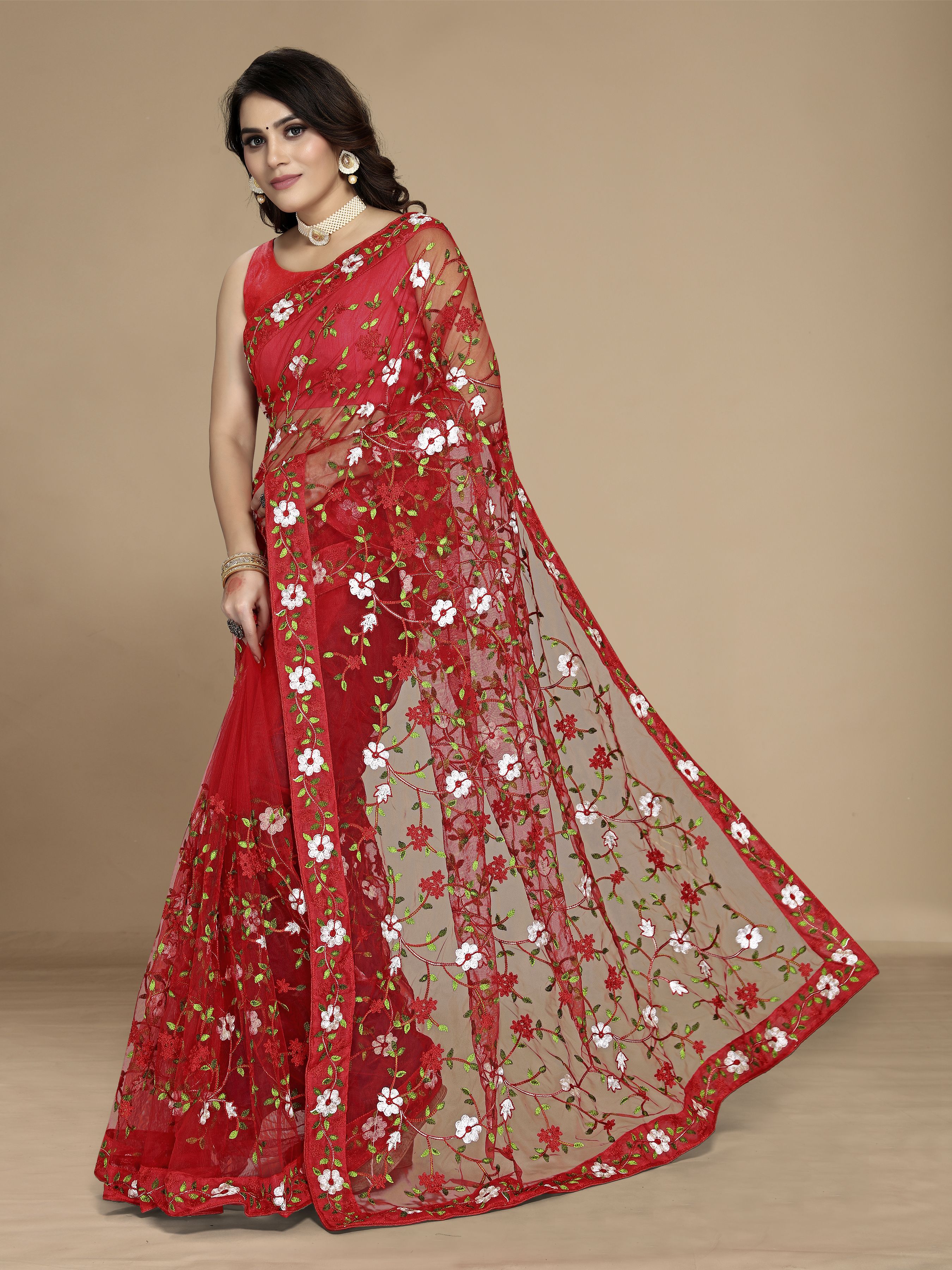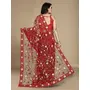 Red Color Soft Net Fabric Designer Multy Thread Embroidery Work Smart Partywear Saree