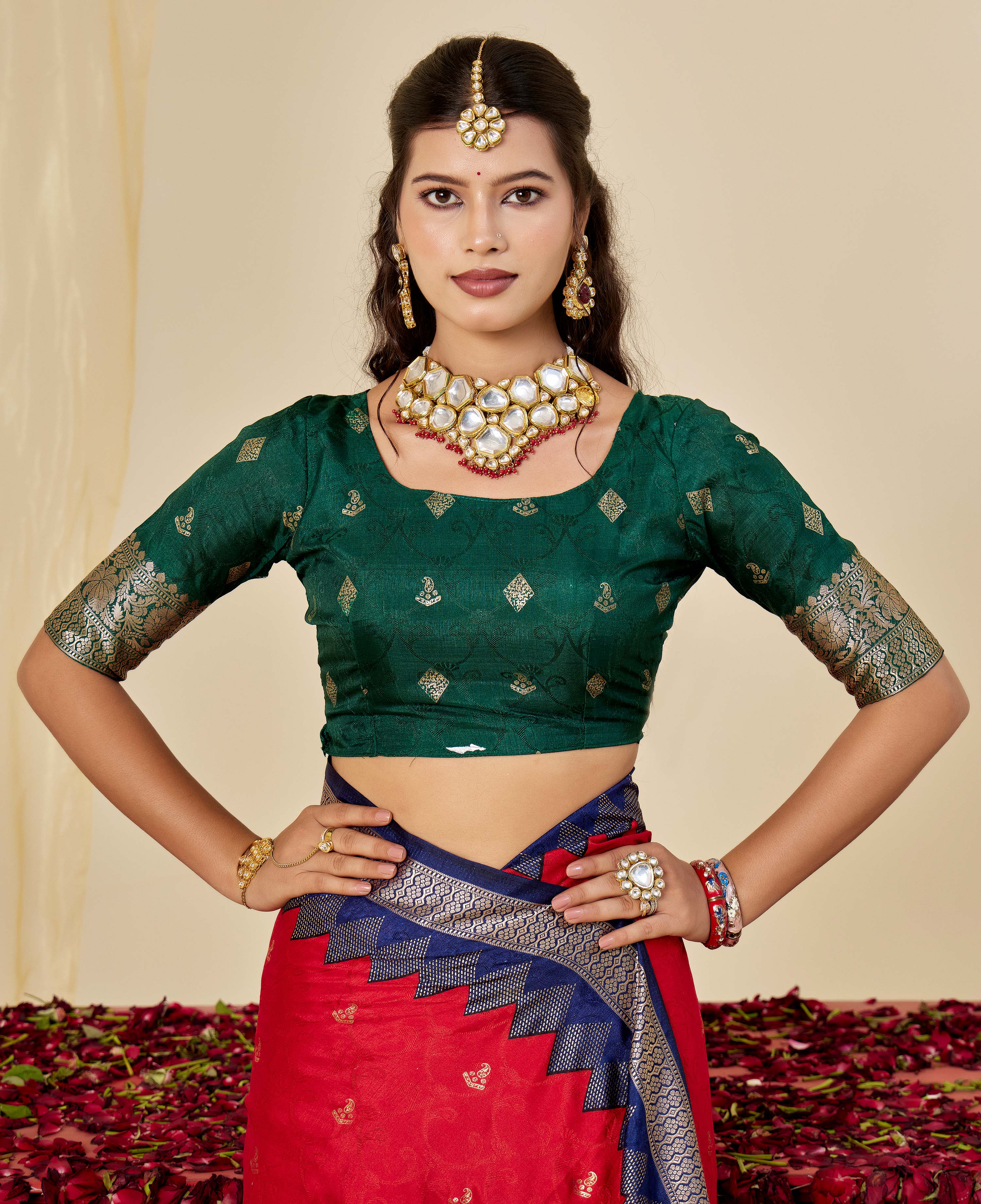 Red Color Velvet Tussar Silk Fabric Woven Saree With Smart Elegant Print