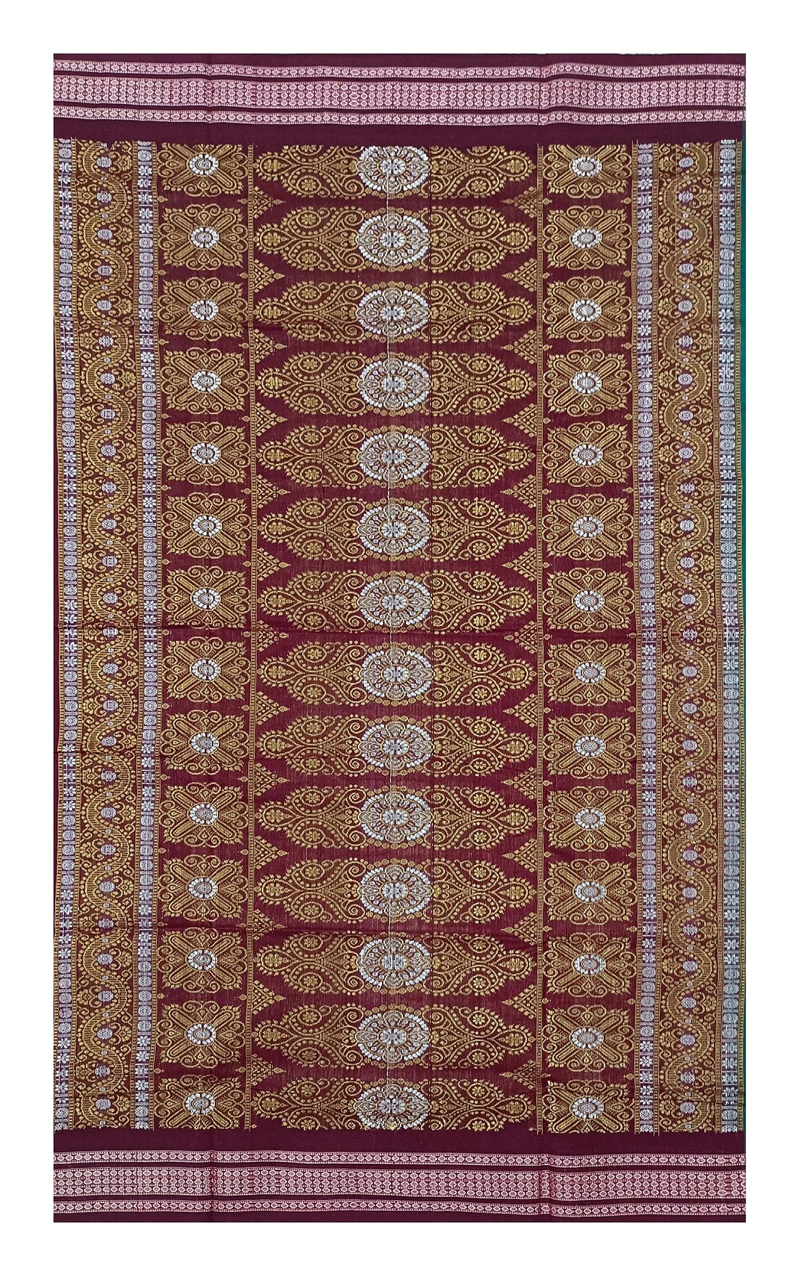 SAMBALPURI BANDHA CRAFT Sambalpuri bomkai cotton saree with blouse piece(Padam motifs in bottle green color base)
