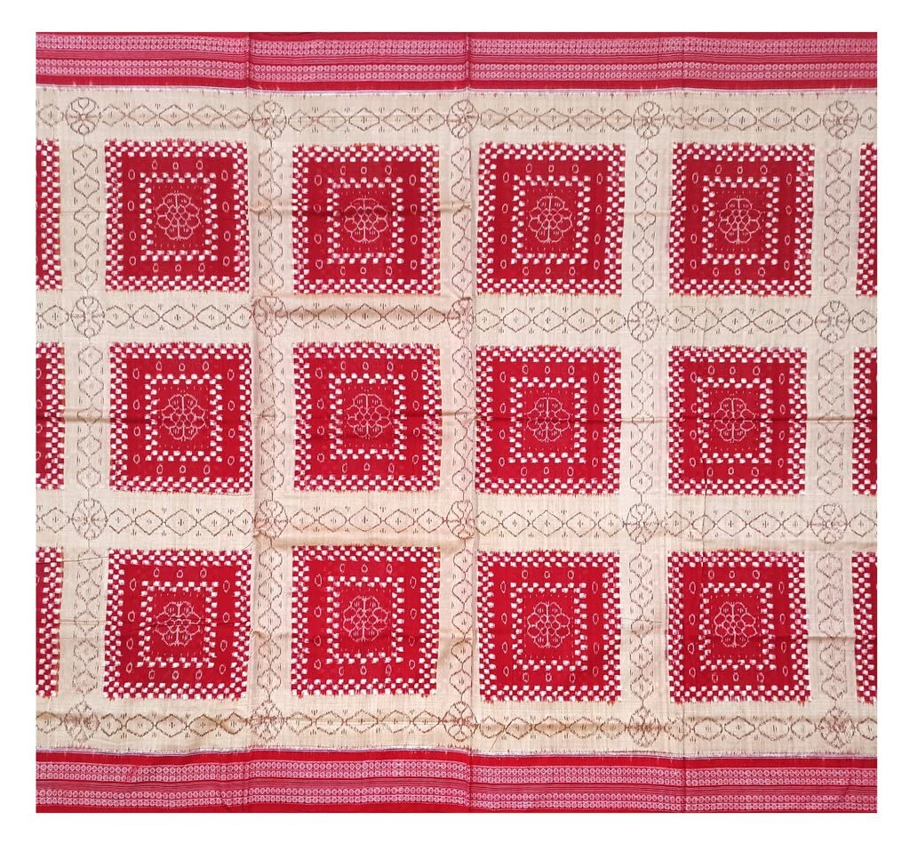 SAMBALPURI BANDHA CRAFT Sambalpuri cotton saree(Box designs in Light peach(Chandan) color base)