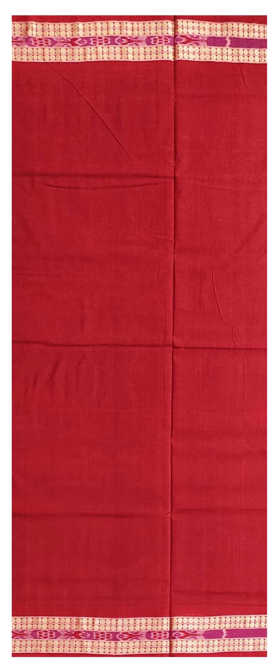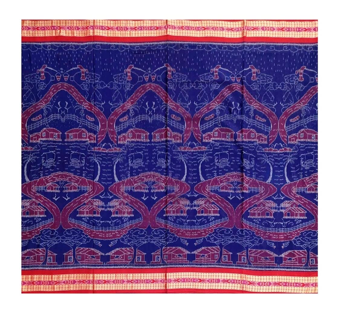 SAMBALPURI BANDHA CRAFT sambalpuri cotton saree with blouse piece(Rain in village design in blue and red colors combination)