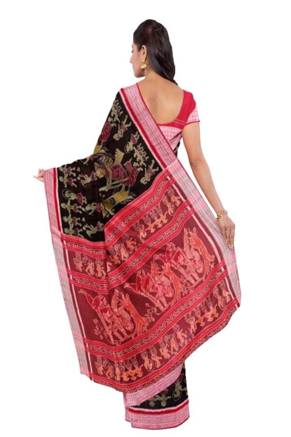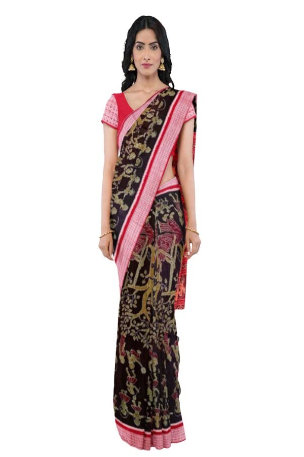 SAMBALPURI BANDHA CRAFT Sambalpuri cotton saree with blouse piece(SCSR92 Raja doli Design in Coffee color base)
