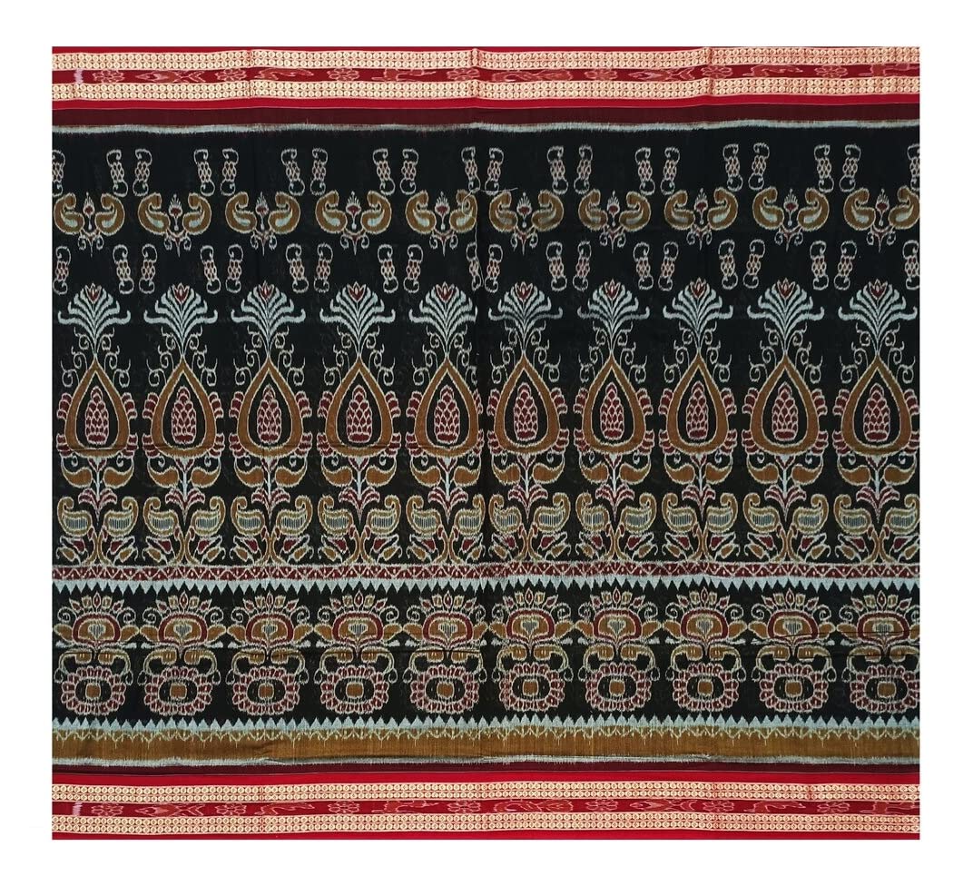 SAMBALPURI BANDHA CRAFT sambalpuri cotton saree with blouse piece(Traditional design in black color base)