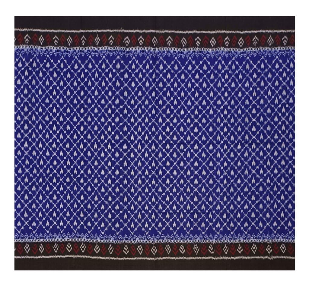SAMBALPURI BANDHA CRAFT sambalpuri cotton saree with blouse piece(Traditional sambalpuri with plain boarder. Blue black and white color socmbination)