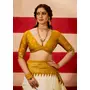 Sambhalpuri Foil Printed Mustard Color Velvet Tussar Silk Fabric Sophisticated Saree