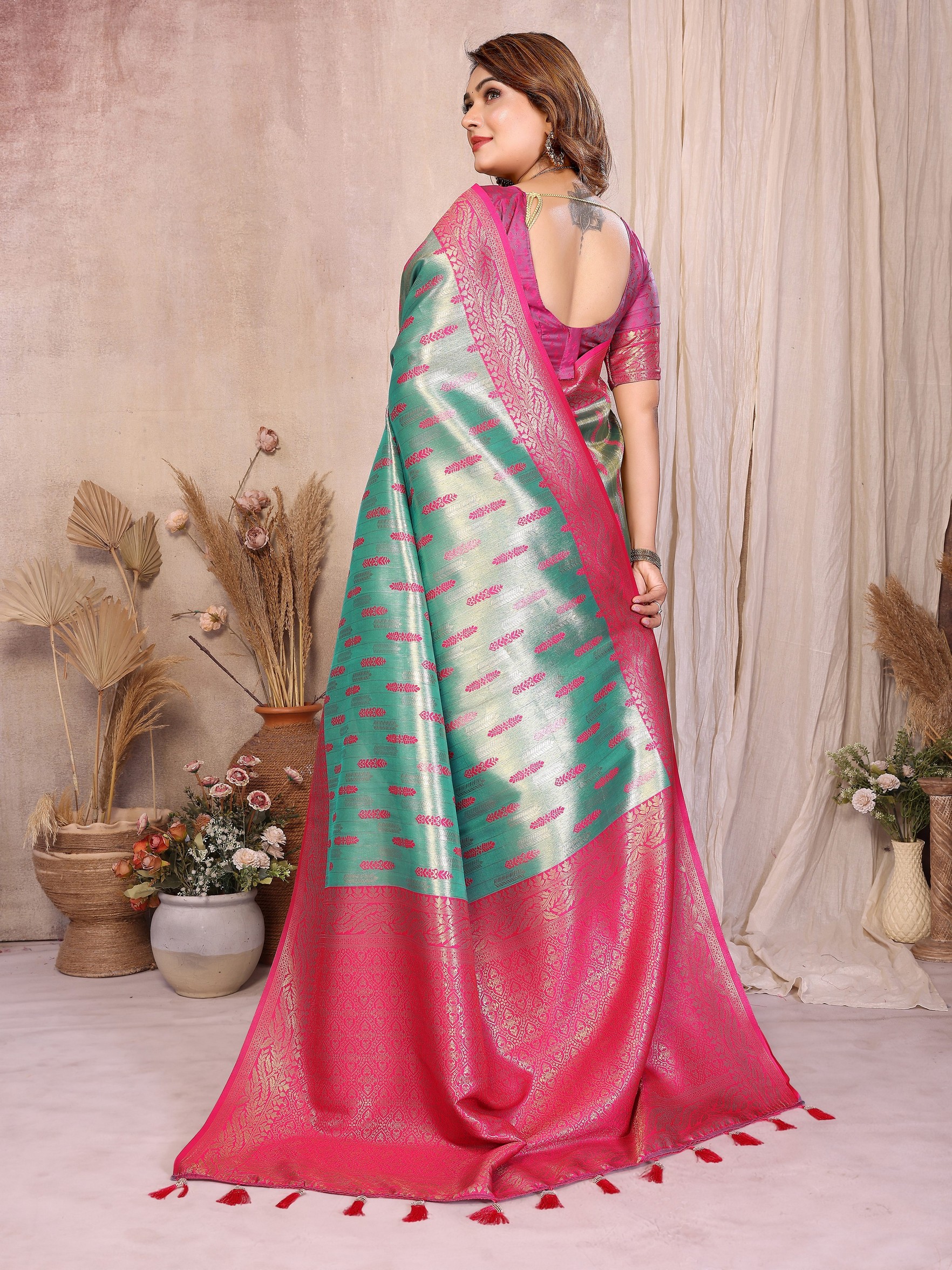 Sea Green Color Beautiful Banarasi Tissue Silk Rich Sophisticated Saree
